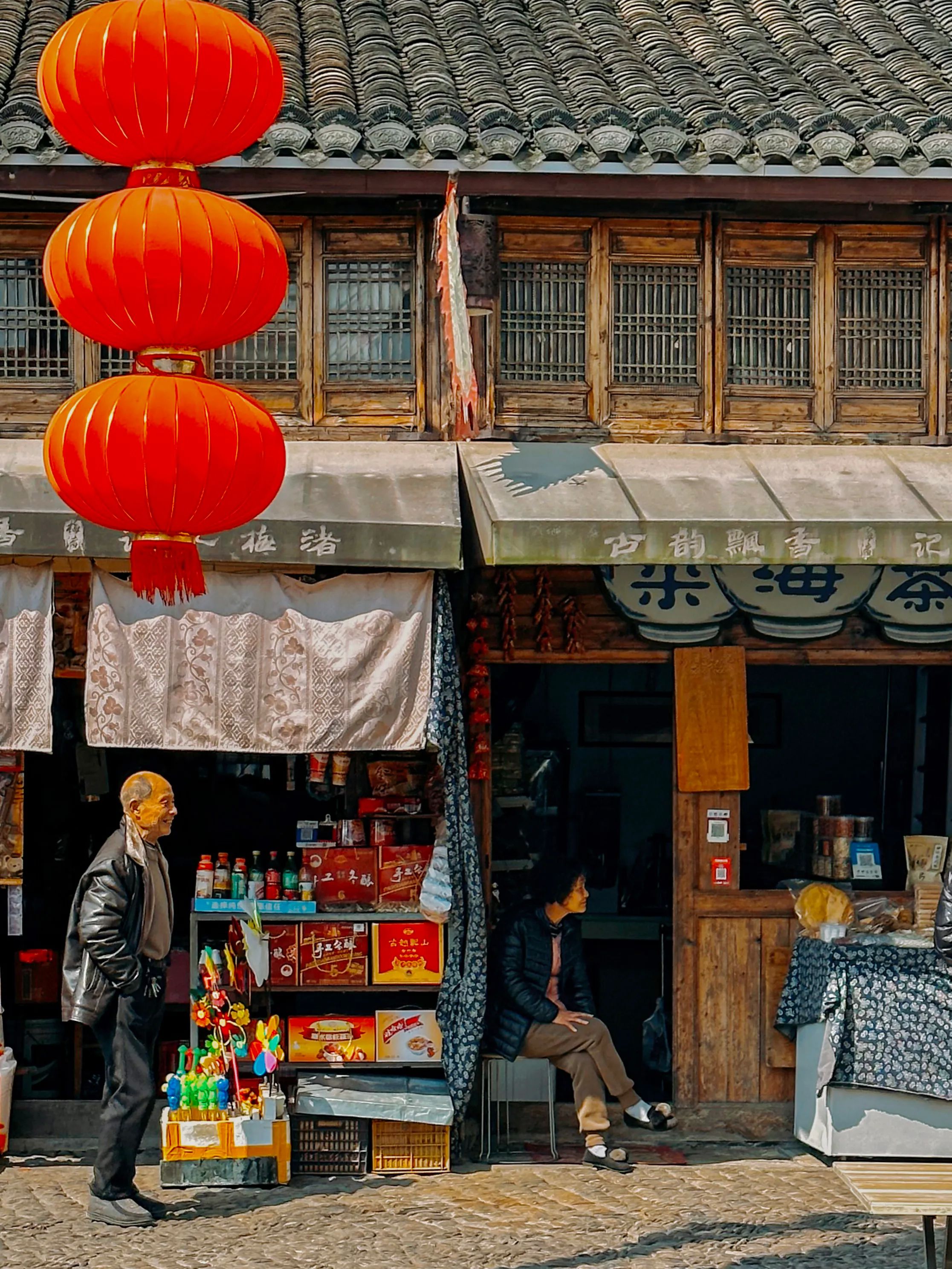 一个至少仍住着原住民的的江南千年古村,路两旁是糟米、手工豆腐、剪纸等非物质文化遗产手工作坊,都是当地人手工做的,价格也不贵,烟火味十足,