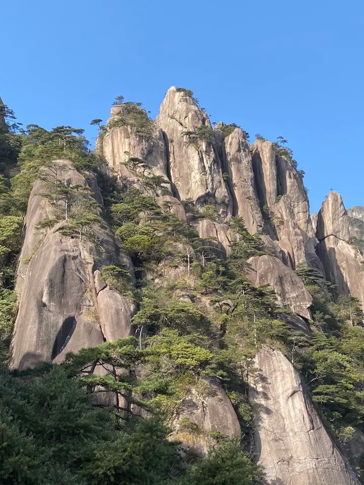 江西上饶三清山,又名少华山、丫山。因为玉京、玉虚、玉华三峰宛如道教玉清、上清、太清三位尊神列坐山巅而得名。玉京峰海拔1819.9米,是江西第五高峰和怀玉山脉的最高峰,山体为花岗岩地貌,形态各异的石柱和山峰,秀美而又大气。如果你是第一次来三清山,可以选择大众经典路线:从金沙索道坐缆车到半山腰,往左边的方向前进,栈道平铺而行,宛如盘在山间的蛟龙,连绵起伏,非常的震憾!偶尔有陡峭险峻上下台阶,需慢慢攀登,风景如画,看得就是满目清明,心旷神怡!南清园——西海岸——东海岸(阳光海岸)——南清园。这是三清山的经典路线,也是精华所在!其实,三清山更适合徒步,虽说三清宫没有什么风景,但我们也去探究了一下道教的古建筑群。三清宫的周围算是荒芜一遍,就剩下一座主殿了,年代久远,透着浓浓的庄严气息!这样一来,就多走了一个多小时了,所以,要游玩的小伙伴们,一定要量力而行,毕竟,差不多二十公里的路程,不是人人都吃得消的!