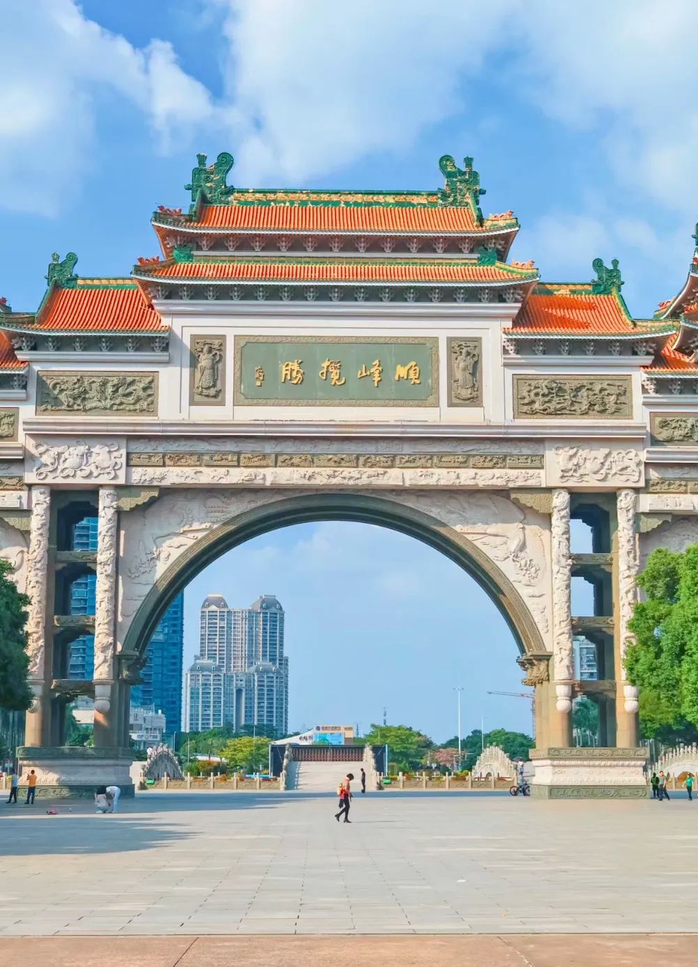 顺峰山公园,顺德新十景之一,位于顺德新城区北部的太平山麓,是一个集休闲、娱乐、文化和自然观光于一体的综合性公园。公园以原有的山色水韵为基础,融入了深厚的人文历史底蕴,形成了“青山、碧水、一寺、两湖、两塔”的自然与人文景观格局。