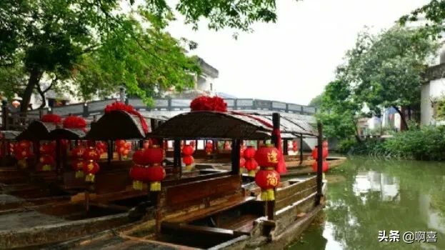 4、顺德逢简古村,被誉为广东最美农村、顺德周庄,适合坐着小船,吹着江风,听摇撸划水,看几百年古桥的倒影。