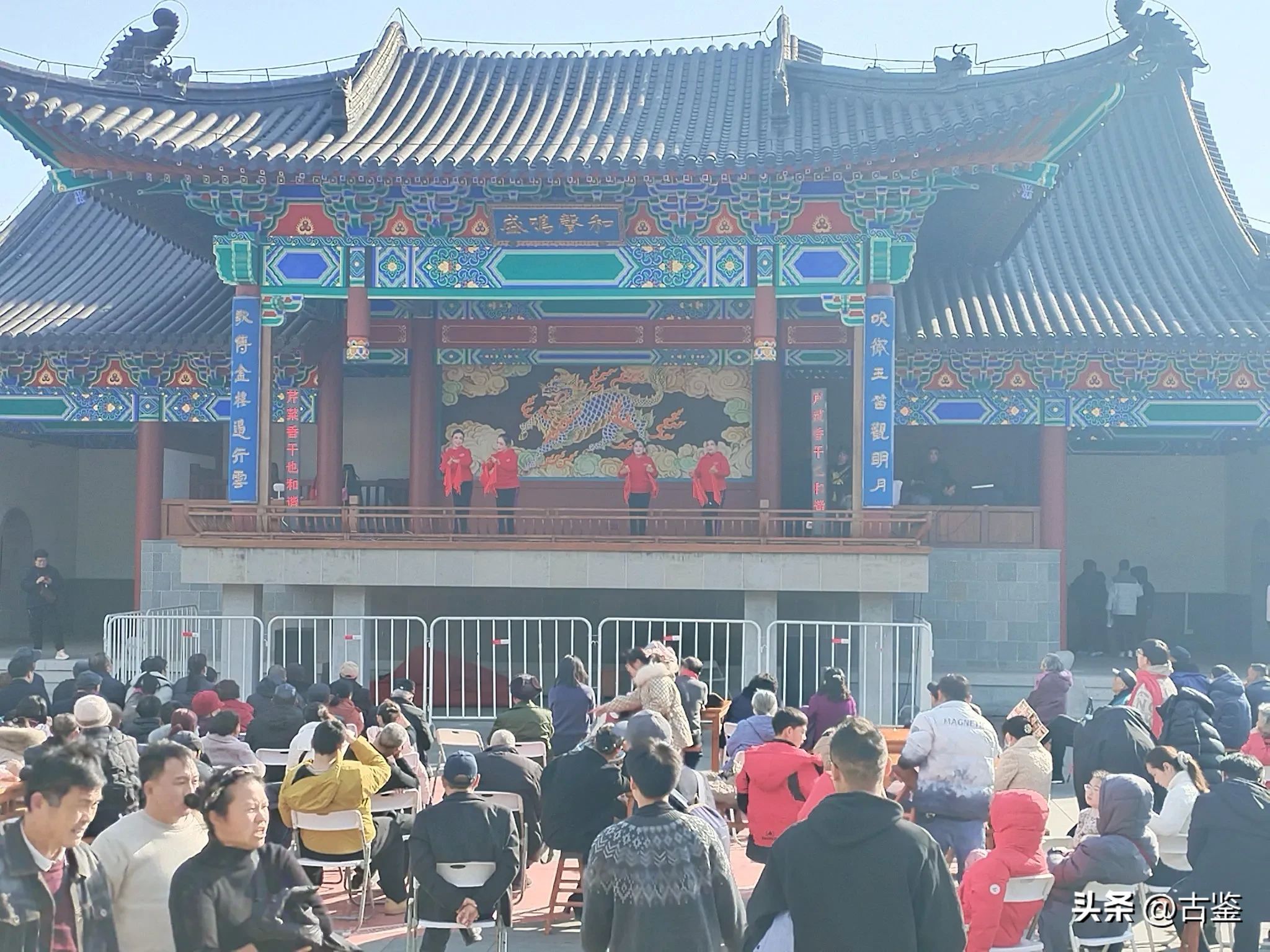 在城隍庙内,还有一座戏台,戏台上当地演员正在用表演唱的形式宣传溧水的过年传统习俗、年味以及溧水特色特产,台下广场上摆放的椅子上坐满了观众,个个看得全神贯注。说句实话,这样的戏台,这样的表演,我也是久违了。站在这里看表演,有一种穿越感。