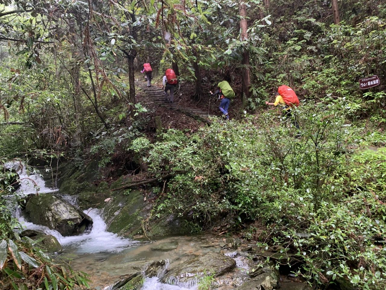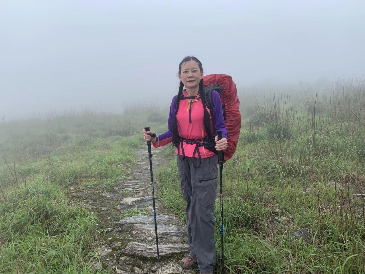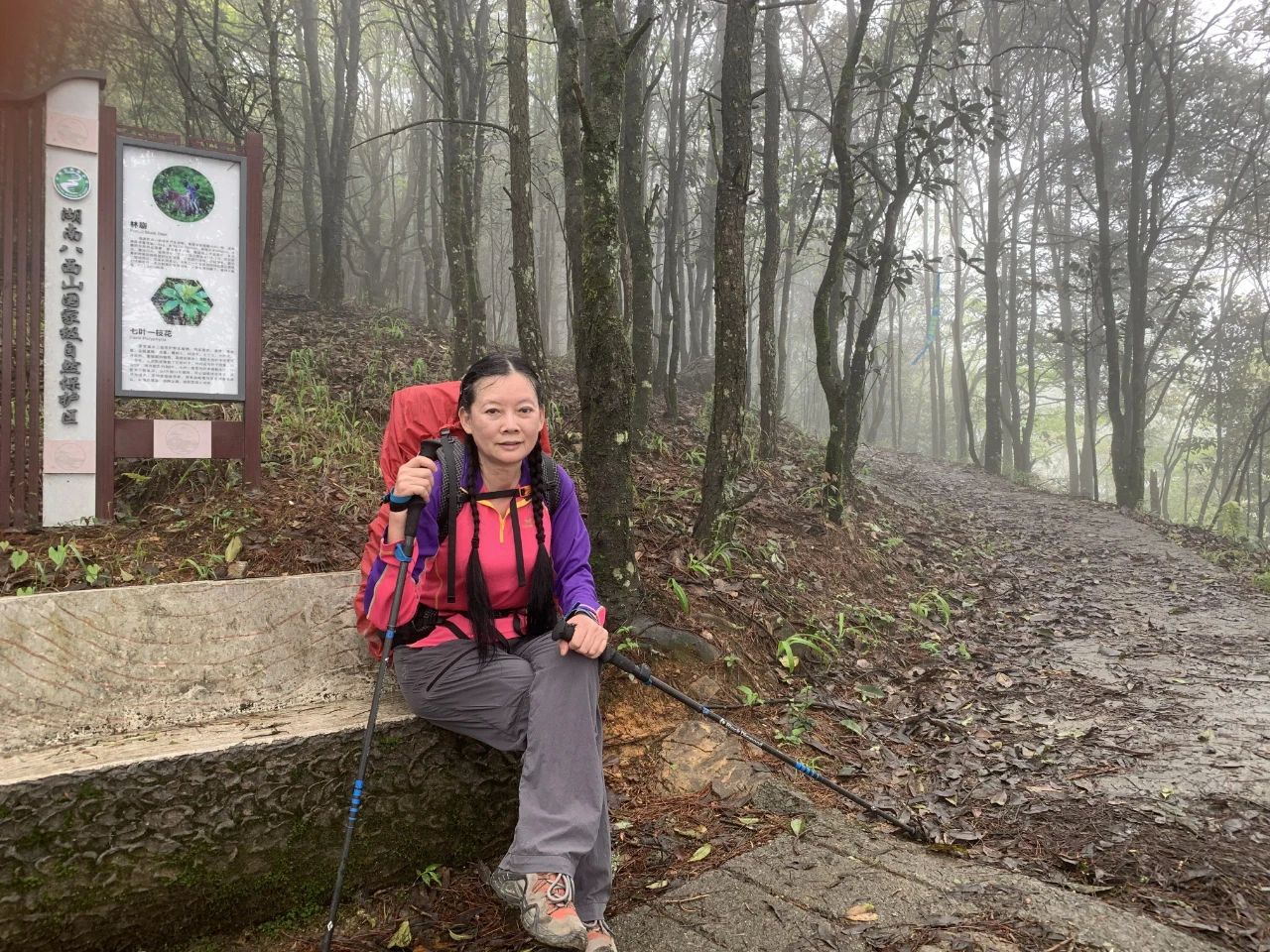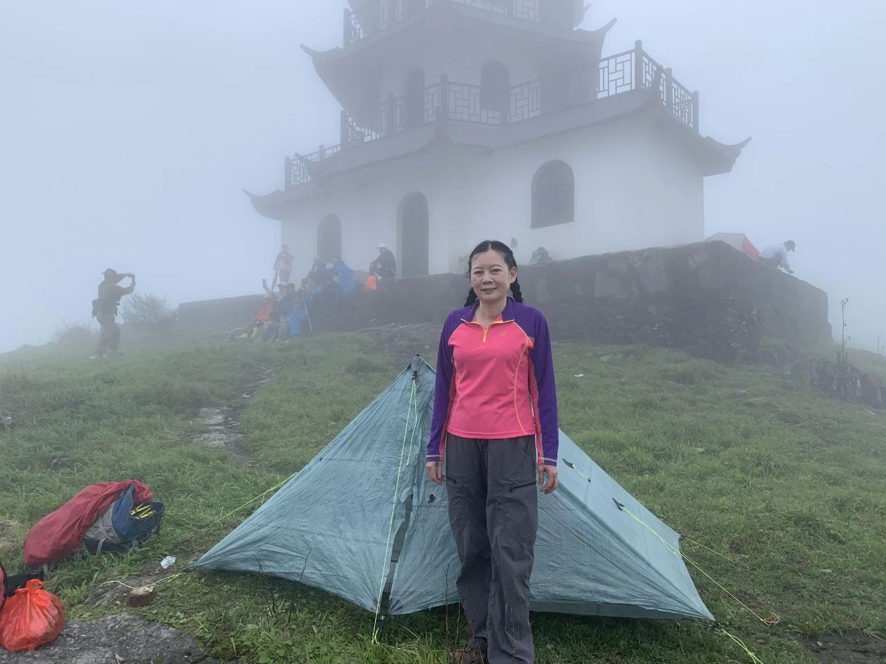2024年5月2日郴州桂东八面山露营记2024年5月2日至3日与独狼随风飘夫妻共5人到郴州桂东爬湖南第三高山八面山,湖南郴州市的八面山(山脉):位于湖南省桂东县西部北部—资兴市东部、炎陵县西南部,主体在桂东县,东北—西南走向。属罗霄山脉,主峰石牛仙海拔2042米,我们2日早上8点从市里出发,11点到登山口,海拔1000米,11点20分上山,全是陡峭山路,决定当天走到观景塔,登山路程不远,5到6公里,但爬升高度确有800多米,重装爬高,感觉体力有些不支,在南岳重装爬山6公里还没有感到如此吃力。中途吃了自带的中餐,独狼先到达,放下装备赶忙下来为我背包,非常感谢同行的这份爱心。到达观景台是中午1点40分。我们决定在观景台搭帐篷,要上主峰还有200米爬升,要走1个半小时,打算3日上午吃完早餐再去,观景台有三层,钢筋水泥建造,一层可搭5个帐篷,二层三层都可搭,但他们嫌塔内地面有很多漏雨带下的粉刷的白粉,还有牛粪臭,都愿搭外面,但外面的草地不平整,我俩凑合找了感觉好点草地。我们上山时不时有很多人从山上下来,很多外省的驴友,据说八面山的云海很有些名气,他们都是冲云海来的,我们上到山顶,水雾很浓,天地茫茫十米开外,不辩牛马,山上风大,气温低,我连忙把羽绒服加上,一条单裤也不够,穿二条裤才勉强顶住寒冷。独狼与随风飘2人去提水,下午三点左右下雨,原打算在室外做饭,赶紧搬到观景台内,在塔外找到一扇丢弃的门板,用几个水泥墩架起,做了一个临时案台用以做饭吃饭喝茶,很好。大雨一直下个不停,山下不停有团队上山,有浏阳的有广西的有广东的还有永州的都是20多到30之间的小青年,也都是重装上山,比衡阳南岳有生气些,衡阳重装的大都是中老年人,他她们见找不到好点的营地,大雨又下个不停,有几拔人冒着雨下山了,只留下5个浏阳的小年轻人在观景塔内搭帐篷,喝完酒,又喝过茶,感觉有些困,晚上8点多大家都进了帐篷,睡袋被风从外帐底卷进的雨水打湿了,我是连羽绒服外裤一起钻进睡袋,脚感到很冷,地又不平整,晚上风很大,把帐篷吹的哗哗响,我很担心帐篷的地钉被风拔起,当时在搭帐篷时,只观察地形地面,没有在意风向,把帐篷的出入口搭在风上方,应搭在头部方向,风就不会卷起外帐底的雨水送进内帐,独狼的帐篷搭在观景檐台下,水泥地面很平整,晚上檐口滴下的雨水都滴在帐篷上,流进了地垫,挨着屋檐边搭帐篷,一定要远离滴水和积水。深夜有二青年上山,也在草地搭了帐篷,大风一直刮到下半夜才停歇。我才安心入睡。3日一早6点多,大家就起来收拾帐篷,吃早餐,山上雨雾还是很浓,没有云开日出的丝毫迹象,查看当地天气,上午9点后都是雨,我们提前在7点多下山,一个半小时下到山脚登山口。来回跑了有500多公里,虽没有看到云海,也很开心。到衡山湘菜馆吃中饭200元,随风飘开车,连同中餐每人150元,良心收费,自助户外。湖南衡阳 黄怡剑2024年5月4日星期六#浏阳大围山徒步# #五一武功山徒步# #徒步四都环线# #公盂徒步# #南风面徒步# #武功山记录#