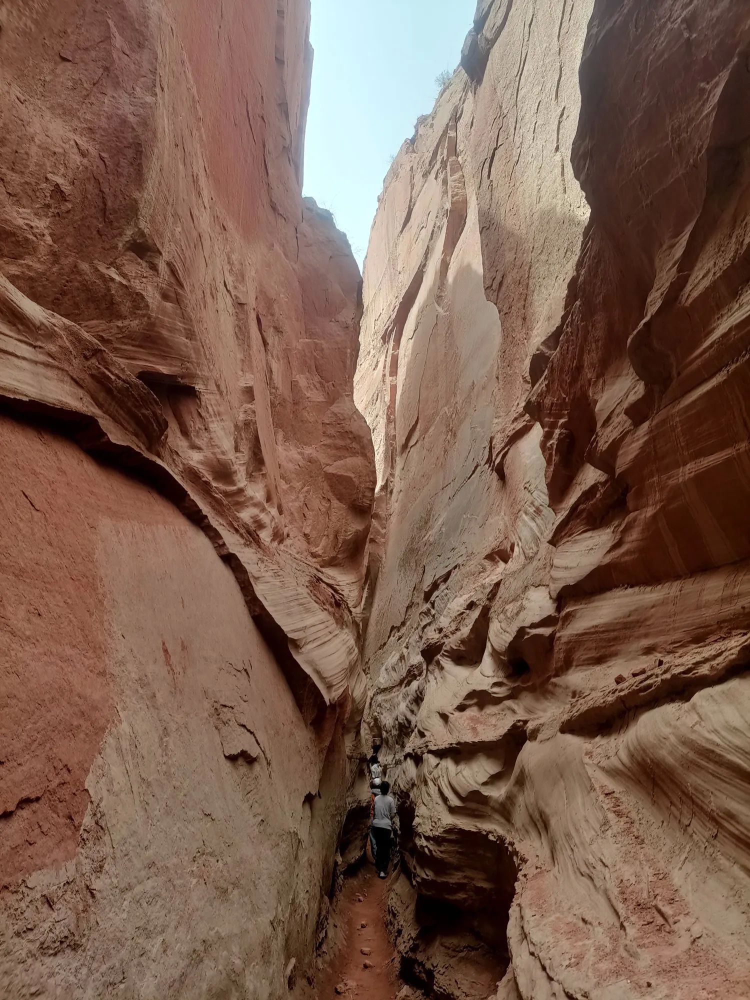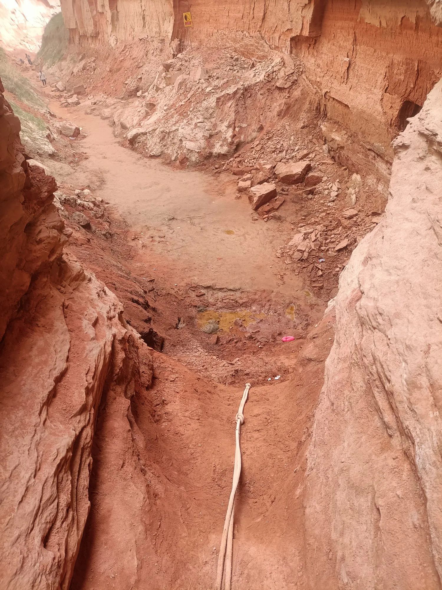 走到峡谷入口,大多数游客都在观望。进入峡谷底部有风险,坡上蜿蜒曲折的羊肠小道,旁边就是陡峭的悬崖,腿脚不利索的,老人、小孩就不要进入了。