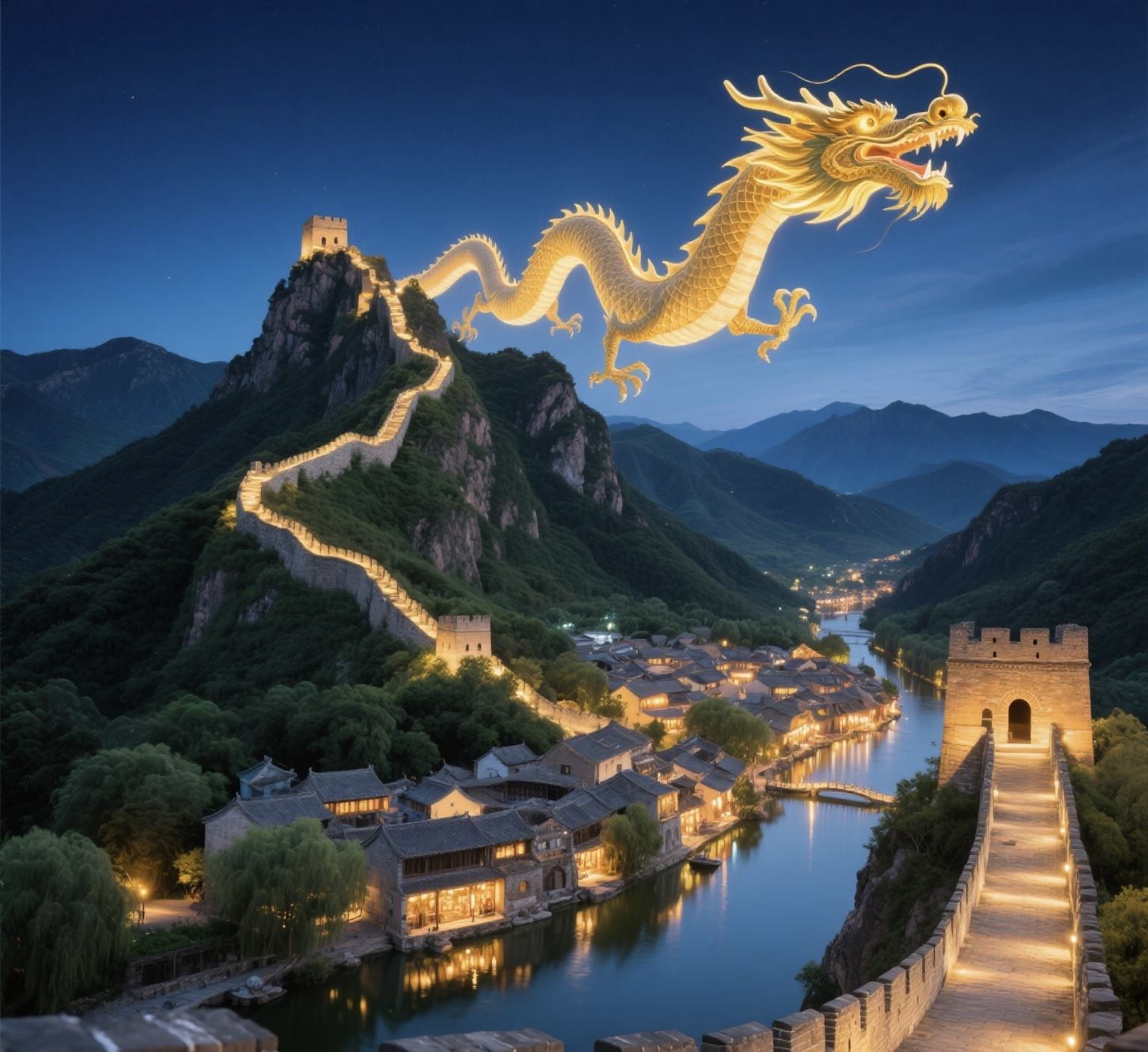 司马台长城,是古北水镇最壮丽的背景。它宛如一条巨龙,盘旋在山脊之上,巍峨雄伟。白天,登上长城,极目远眺,四周的山峦起伏,郁郁葱葱,古北水镇的全貌尽收眼底;夜晚,长城在灯光的勾勒下,轮廓分明,宛如一条金色的巨龙在夜空中腾飞,与水镇的灯光交相辉映,构成了一幅震撼人心的画面。