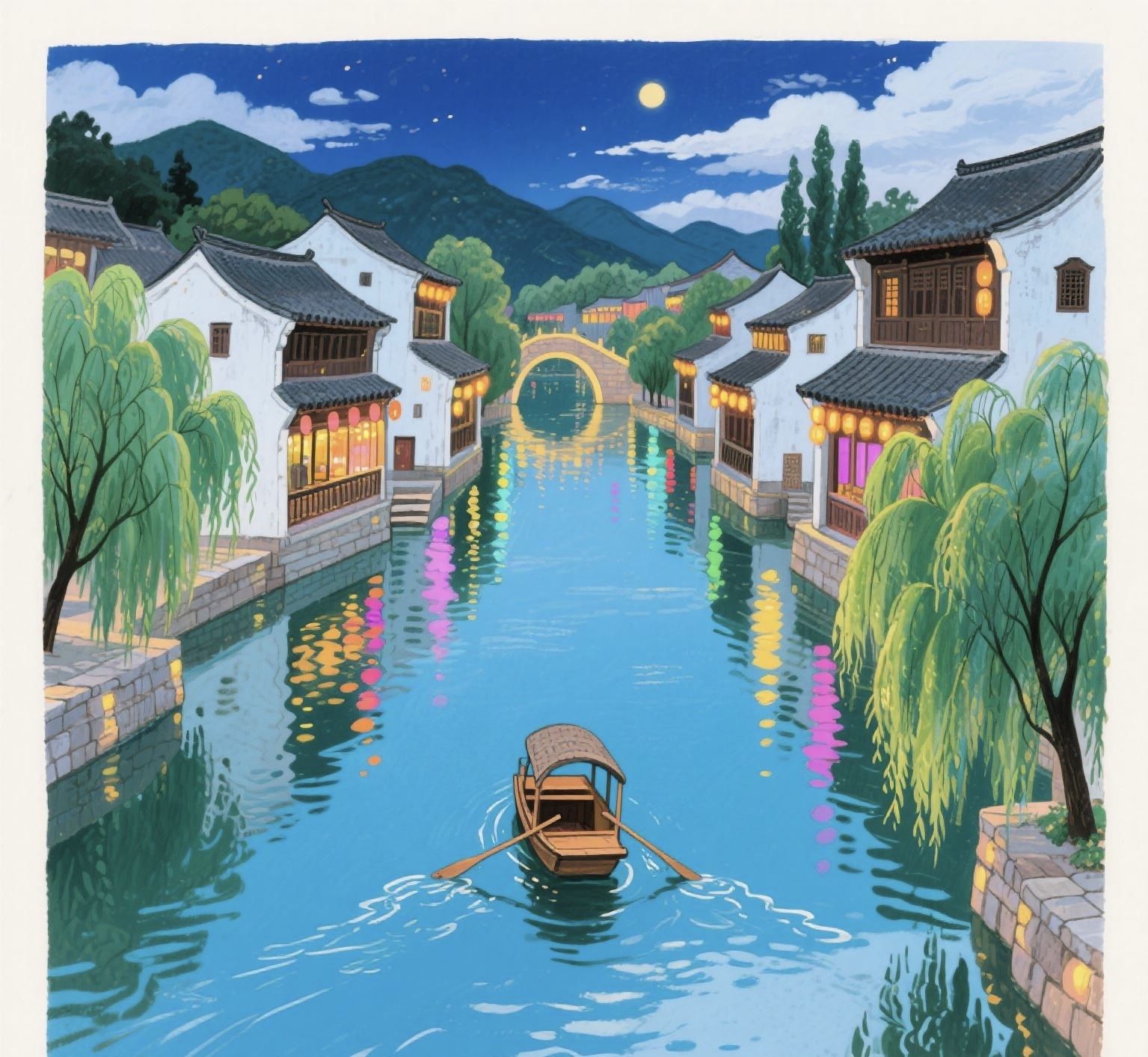 水,是古北水镇的灵魂。河道纵横交错,碧波荡漾,小船悠悠划过,荡起层层涟漪。沿着水畔漫步,眼前的景色如诗如画:白墙黛瓦倒映在水中,与蓝天白云相映成趣;岸边垂柳依依,随风摇曳,宛如少女的发丝在风中轻舞。夜幕降临时,水镇更是美得令人窒息。两岸的建筑被璀璨的灯光照亮,五颜六色的光影倒映在河面上,如梦如幻。坐在游船上,穿梭于光影之间,仿佛置身于一个童话世界,所有的烦恼和疲惫都在这一刻烟消云散。
