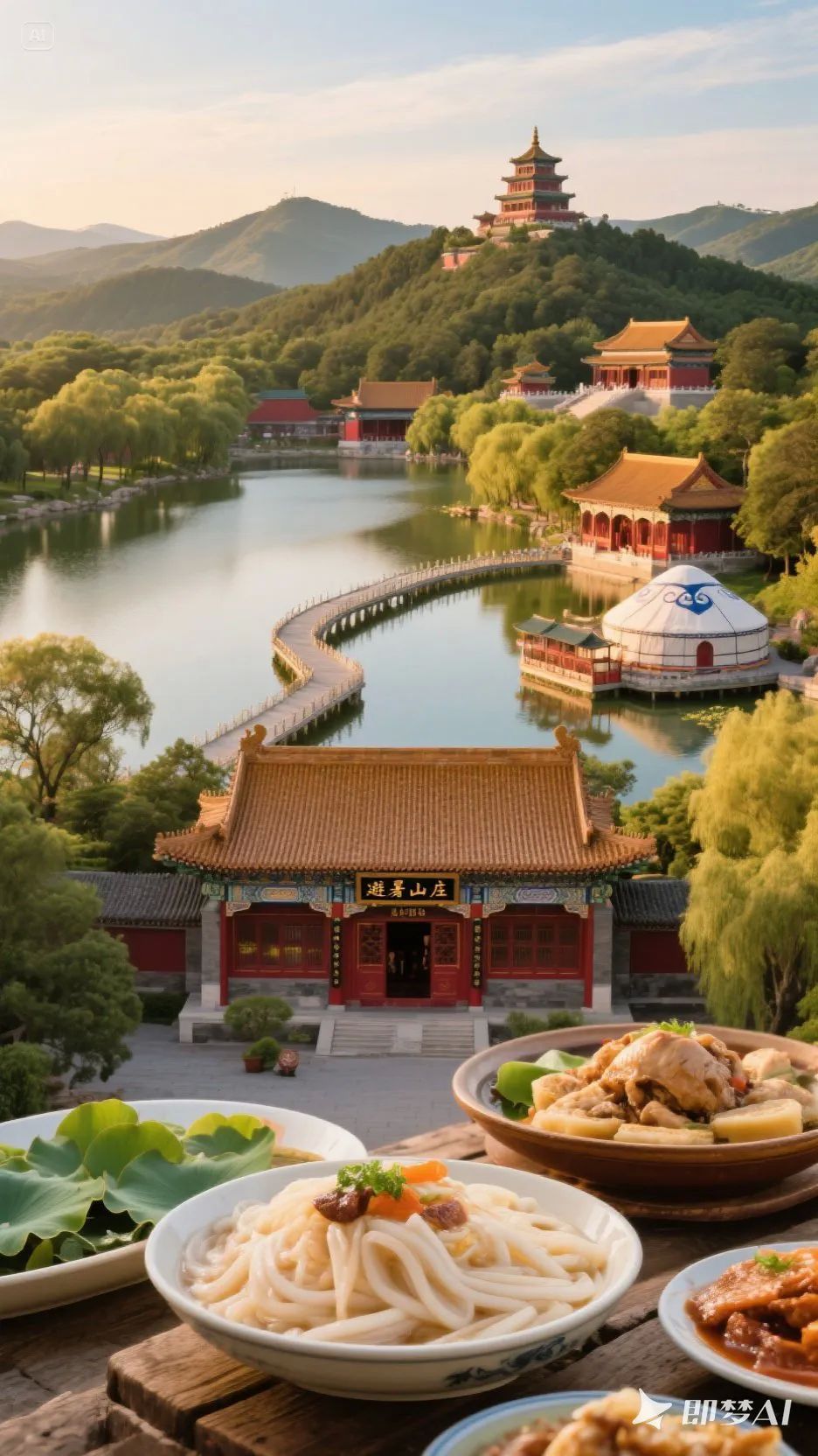 - 御土荷叶鸡:用承德特有的离宫黄土、热河的泉水和湖内的荷叶包裹烧制,有一股淡淡的荷叶清香。