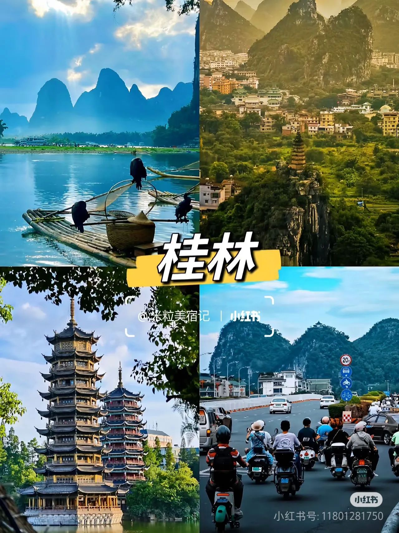 漓江竹筏漂游看九马画山,遇龙河骑行遇田园风光,东西巷逛明清古巷,两江四湖夜景乘船,来碗桂林米粉开启元气 day。