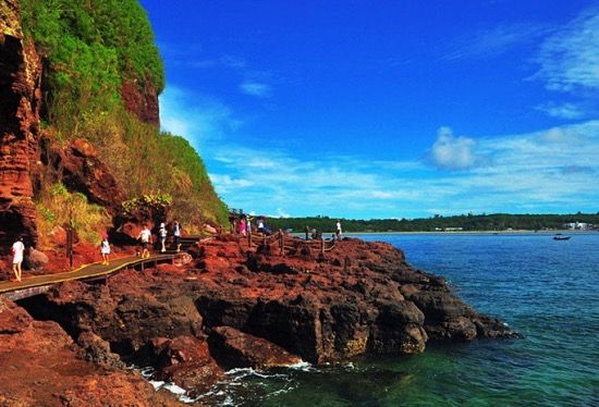 • 概况:位于北海市海城区,是中国地质最年轻的火山岛和广西最大的海岛。这里有壮观的火山熔岩奇观,如鳄鱼山景区的火山口、海蚀崖等,还有美丽的海滩,如五彩滩、石螺口海滩等,适合观日出日落、游泳、潜水等。