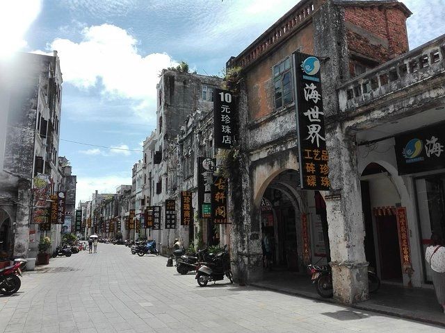 • 概况:包括珠海路、中山路、沙脊街等街区,建于清同治、光绪年间,是中国保存最长的骑楼老街之一,又称“百年西洋街”。建筑多为具有浓郁西洋风情和岭南特色的骑楼,可欣赏铺趸、置业碑、壁画、旧当铺等人文景观。