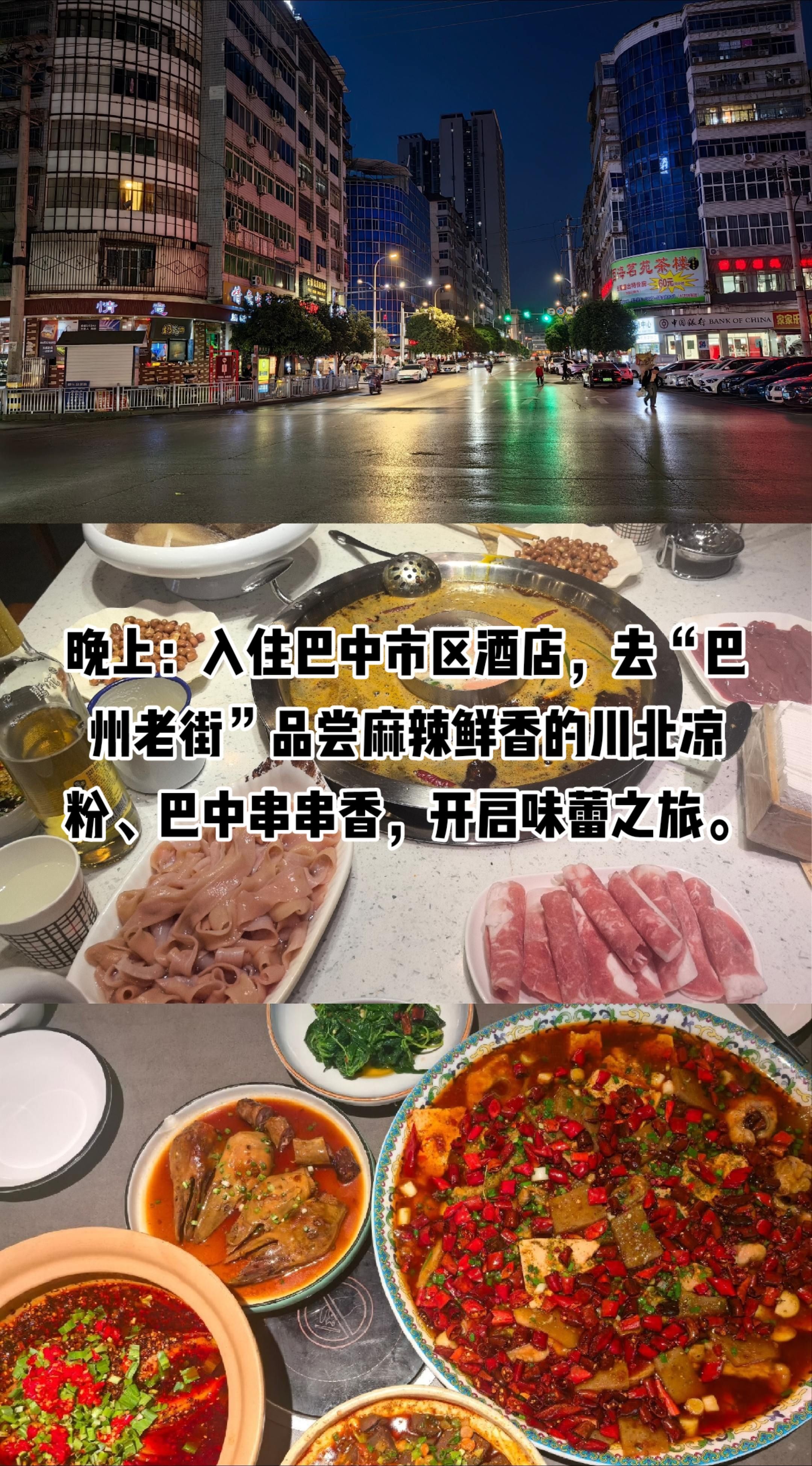 • 晚上:入住巴中市区的江北宾馆或费尔顿酒店,去“巴州老街”吃麻辣鲜香的川北凉粉、巴中串串香,感受巴中的烟火气。