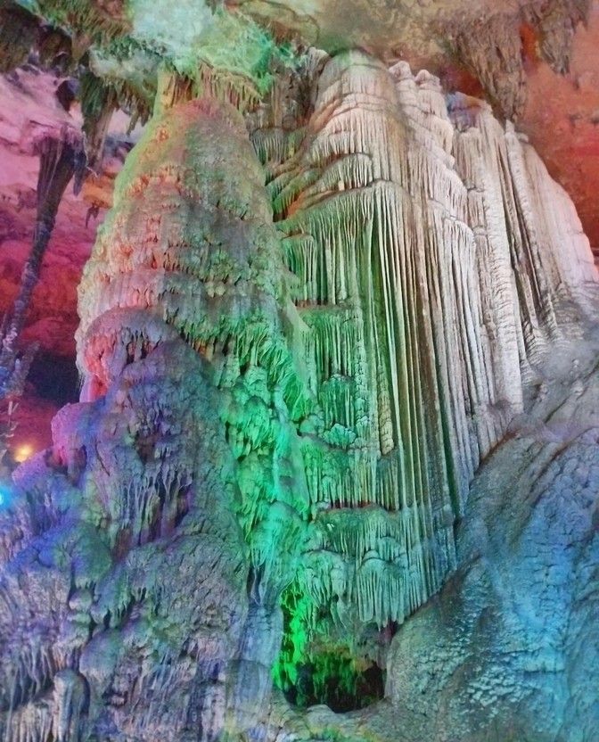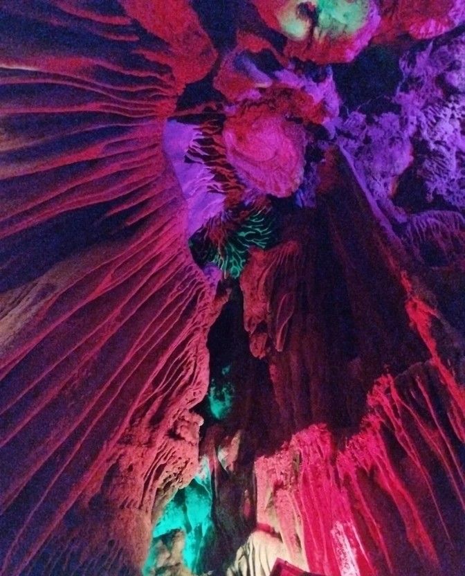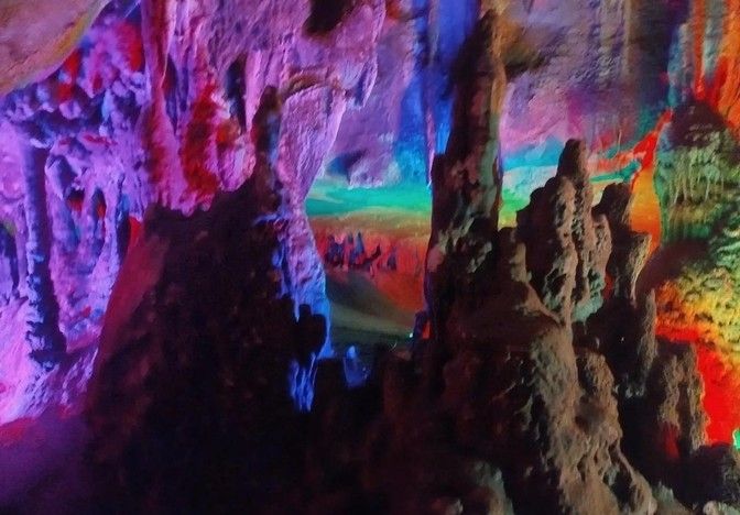 溶洞贯穿了十二座山峰,里面各种钟乳石、石笋等景观让人目不暇接。