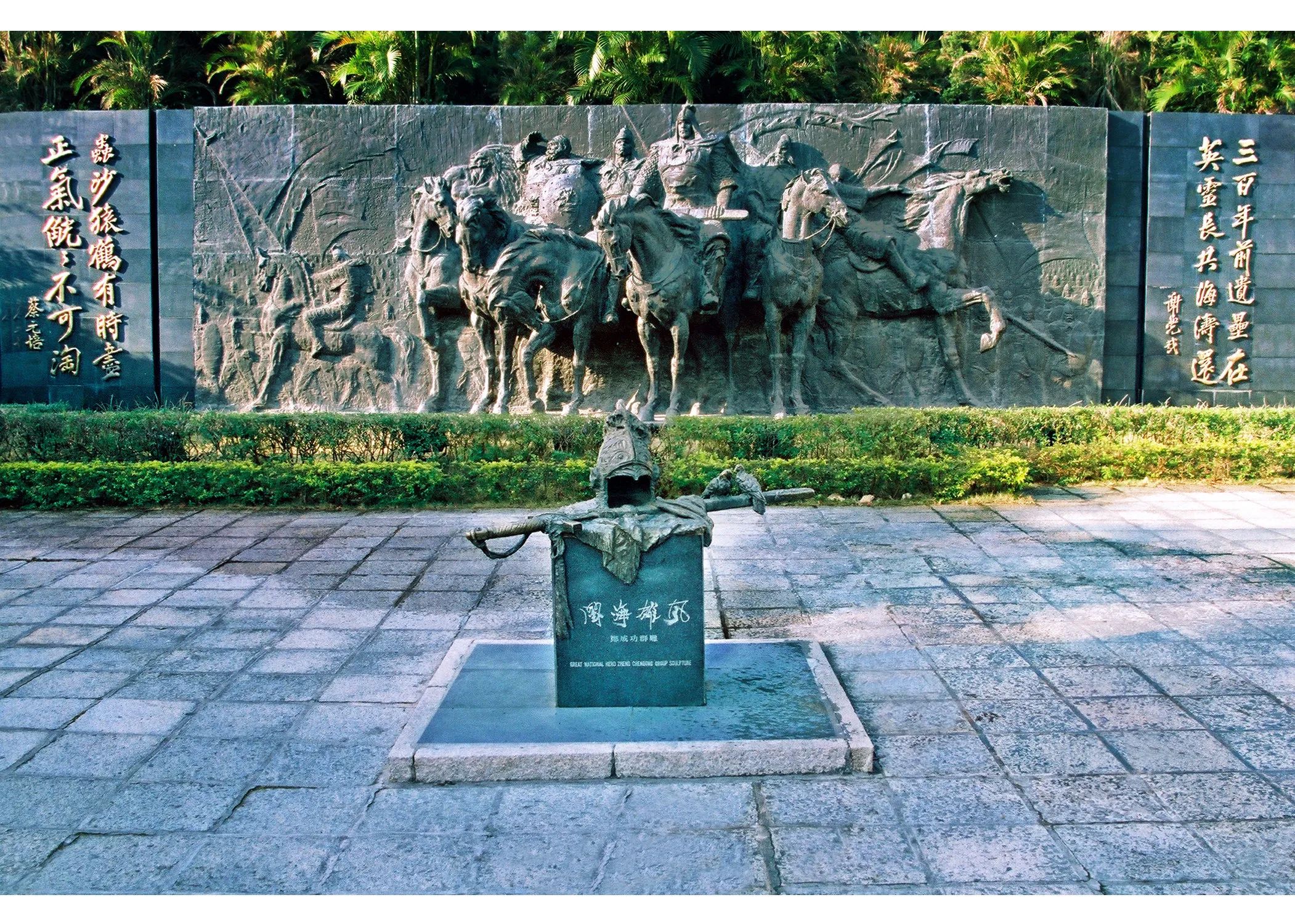 该园占地二万平方米,为纪念郑成功驱逐荷夷、收复台湾的历史功绩而建。园内有郑成功巨型石像,还有各种大型群像浮雕,生动地再现了当年郑成功挥师东渡,驱荷复台的历史场面。建筑吸取了明代建筑风格,各种植物分布错落有致,与海天山色交相辉映,构成了一幅美丽壮观的天然图画。