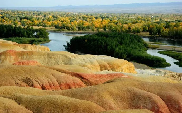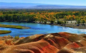 - 五彩滩:位于布尔津县,额尔齐斯河两岸是色彩斑斓的雅丹地貌,与对岸葱郁青翠的河谷风光形成鲜明对比。