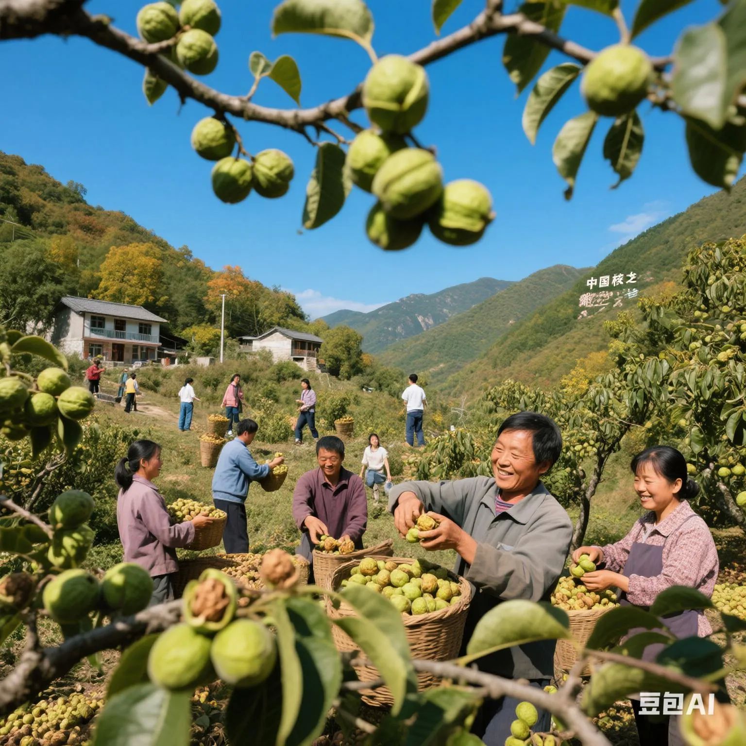 - 这里是 **“中国核桃之乡”**,满山的核桃树,秋收时家家户户忙着打核桃,空气中都是青皮的清香。