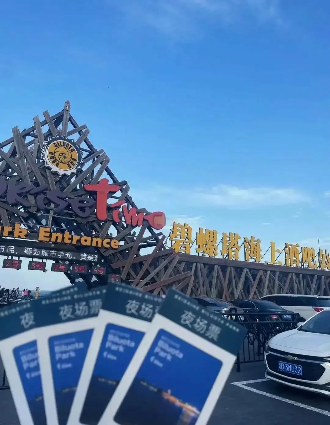 傍晚蓝调时刻灯光亮起,拍婚纱照圣地!沙滩篝火晚会、海上蹦迪,年轻人夜生活聚集地。