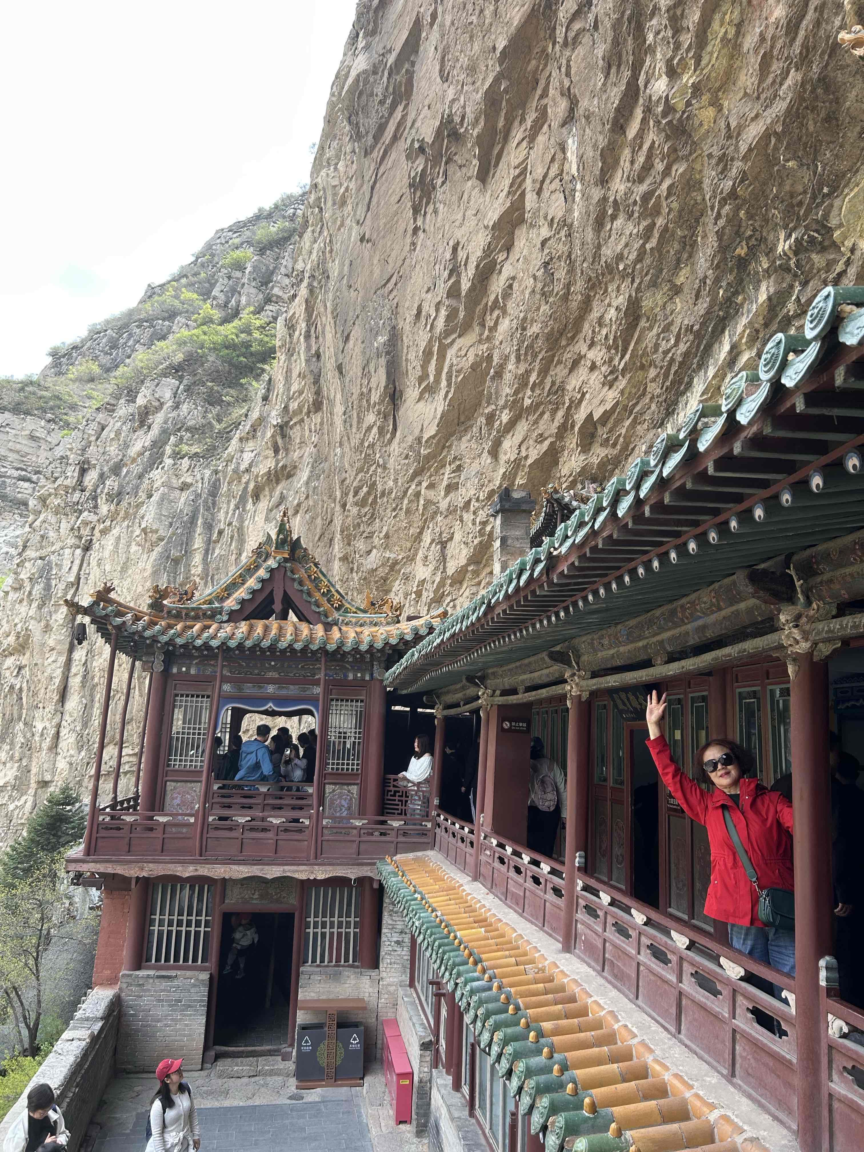 早上9点从大同启程,驾车径直开往悬空寺景区。1小时40分钟后抵达景区。到游客中心购票时,被告知60岁以上老人无票,要等到12点才放票。无奈只能在大厅里等了一个多钟头,终于等到12点才预约到门票进入,乘坐景区摆渡车(20元)抵达悬空寺。