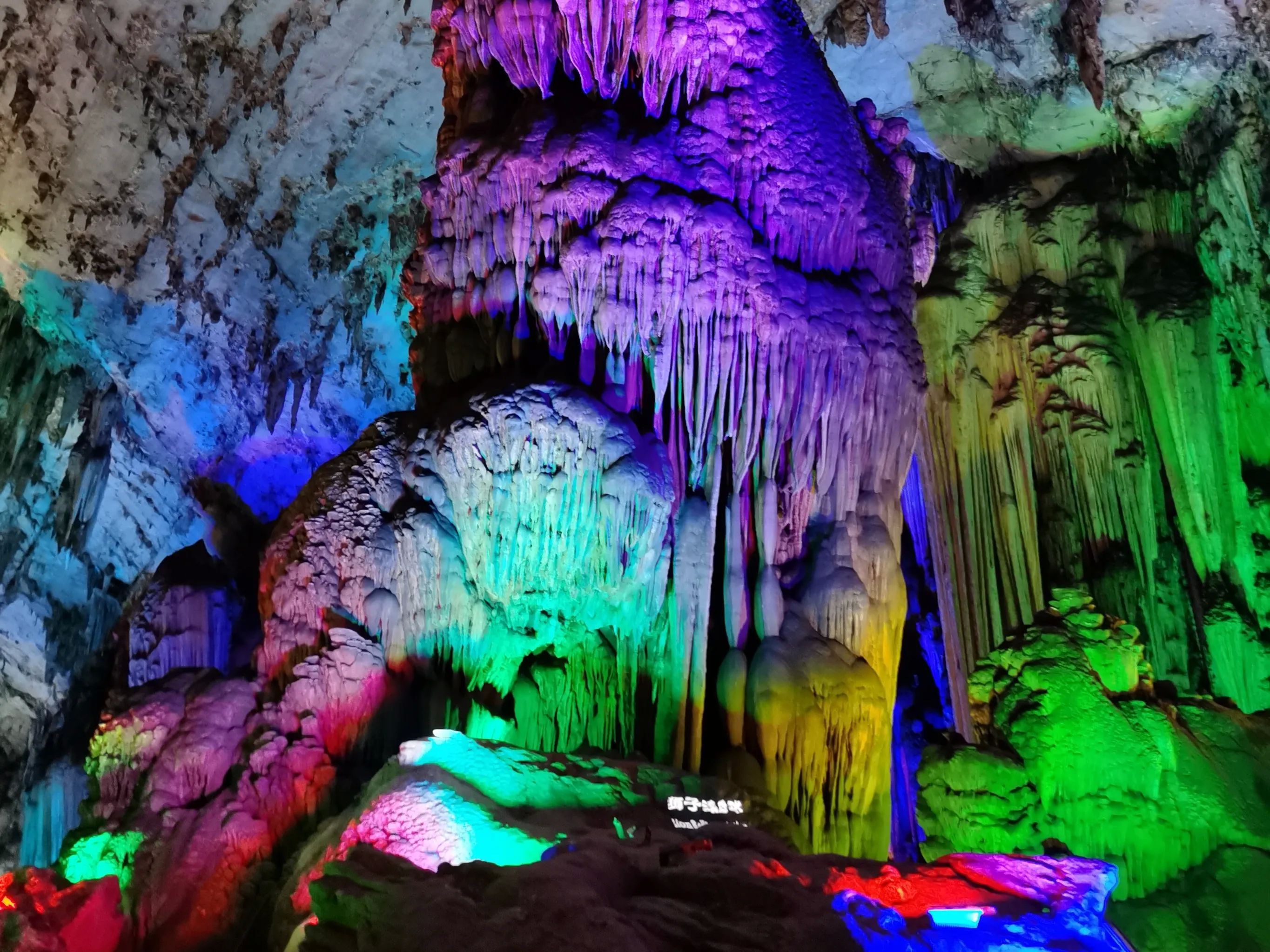 我选择了2号线,乘船游览了溶洞,向大家简单介绍一番:该溶洞历经三亿两千多万年形成,洞长 5 公里有余,属于特大石灰岩溶洞,洞内钟乳石倒垂,天然物象栩栩如生。洞底有众多晶莹透明的细石,经灯光照射光芒闪烁,犹如天河繁星,璀璨耀眼。