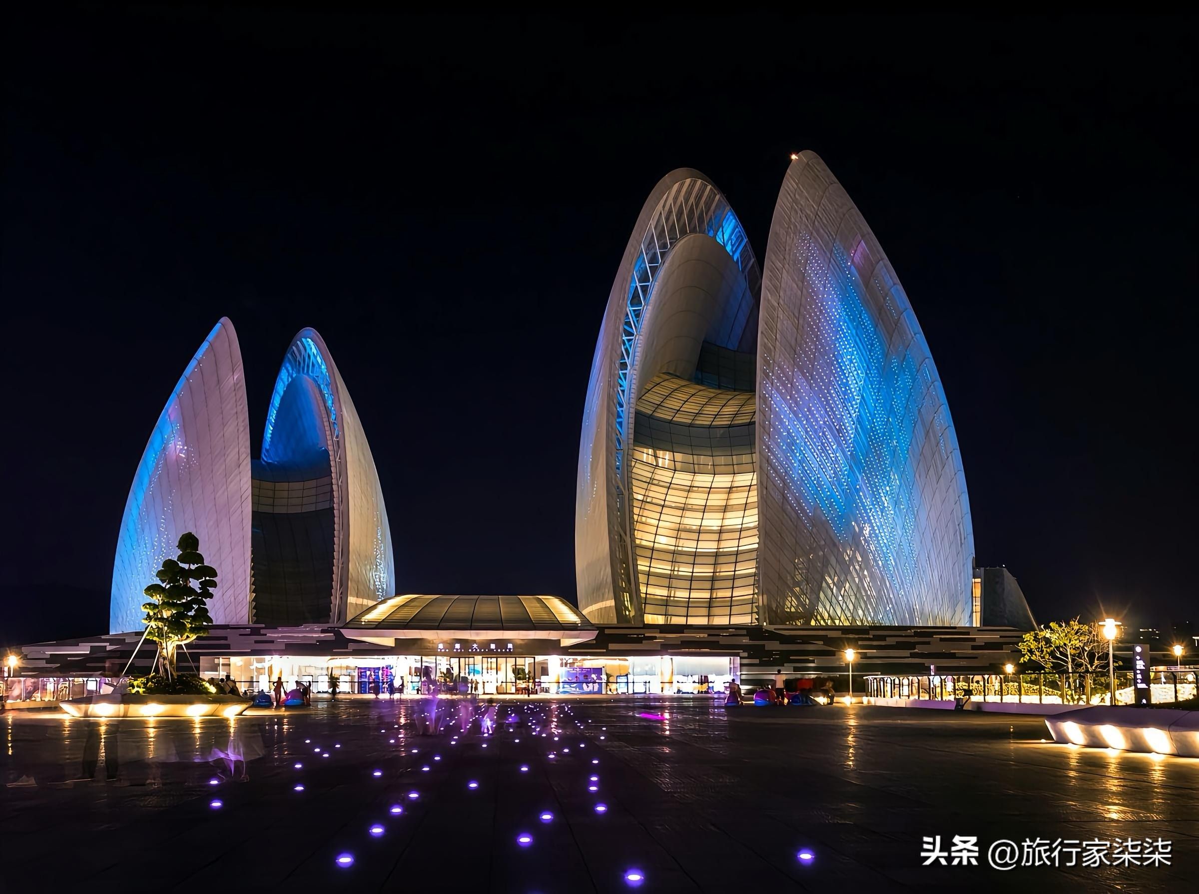 4. 珠海大剧院:中国唯一建在海岛上的歌剧院,以“日月贝”为造型,灯光秀夜景迷人,在野狸岛环岛步道可欣赏其绝美身姿,是拍照打卡的好去处。