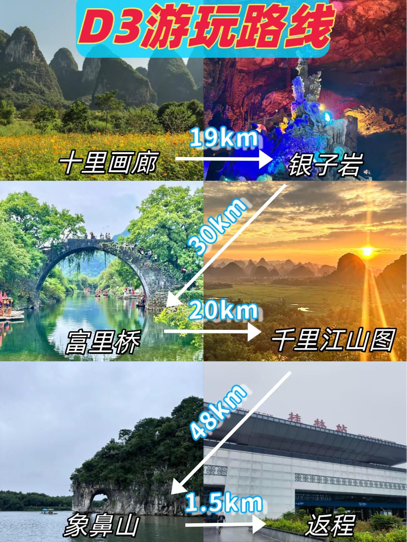 小众桂林3天2晚旅游攻略。别人在热门景点摩肩接踵,咱们一头扎进桂林小众山野,开启特别的3天2晚梦幻之旅!逃离喧嚣,拥抱自然与古韵,快来跟着这份攻略出发~ Day1:桂林城中,古韵与夜色交织上午,从桂林开启旅程,漫步滨江路。一侧是悠悠流淌的江水,波光粼粼间诉说着岁月的故事;另一侧古色古香的建筑错落有致,仿佛在低语往昔的繁华。江风轻轻拂过脸颊,惬意之感油然而生。随后抵达逍遥楼,这座承载着深厚历史记忆的楼阁,静静伫立。拾级而上,站在楼顶极目远眺,整个桂林城的美景毫无保留地铺展在眼前,让人不禁感叹历史与现代的交融之美。午后,踏入步行街,这里仿佛是桂林的生活缩影。特色小店一家挨着一家,琳琅满目的商品让人目不暇接。空气中弥漫着地道小吃的香气,每一口都能品尝到桂林的独特风味,还能挑选几件独具匠心的小物件,留作旅行纪念。当夜幕温柔降临,移步至两江四湖。沿着湖畔悠然漫步,五彩斑斓的灯光倒映在澄澈的湖面上,宛如一幅流动的画卷,如梦如幻。而其中的日月双塔,在灯光的映衬下,更是熠熠生辉,犹如两颗璀璨的明珠镶嵌在这片夜色之中,散发着神秘而迷人的气息。Day2:山水之间,畅享悠然时光清晨,前往草坪乘坐排筏,缓缓飘荡在江面上,仿佛置身于一幅天然的山水墨画中。两岸奇峰罗列,云雾缭绕,时而有飞鸟掠过水面,泛起层层涟漪,每一处景色都美得让人窒息。接着,邂逅西塘风光,不同于城市的喧嚣,这里静谧而祥和。田野间绿意盎然,错落有致的农舍点缀其中,淳朴的乡村气息扑面而来,让人仿佛走进了世外桃源。午后,踏入兴坪古镇,青石板路蜿蜒曲折,两旁的老房子承载着岁月的痕迹。在这里,你可以放慢脚步,细细品味古镇的宁静与古朴,感受时光的缓缓流淌。随后,在遇龙河畔开启骑行之旅。沿着河畔骑行,微风轻拂,沿途的美景如诗如画。远处山峦起伏,近处稻田飘香,每一处转角都能带给你不一样的惊喜。骑行结束后,体验遇龙河多人筏。与同行的伙伴一起,乘坐竹筏顺流而下,河水清澈见底,能看到河底的沙石和游动的小鱼。大家在竹筏上欢声笑语,感受着遇龙河的温柔与宁静,尽情享受这惬意的时光。夜晚,西街灯火通明。这里充满了活力,酒吧里传出动感的音乐,餐厅中飘出诱人的美食香气。穿梭在熙熙攘攘的人群中,挑选一些特色纪念品,感受西街独特的夜生活氛围。Day3:奇景如画,圆满返程清晨,车观十里画廊,一路上美景不断。山峰形态各异,有的像骆驼,有的似笔架,在阳光的照耀下,仿佛一幅天然的山水画卷在眼前徐徐展开。接着,探秘银子岩。走进这个奇幻的地下世界,五彩斑斓的灯光照亮了形态各异的钟乳石。它们有的如擎天巨柱,有的像飞泻的瀑布,还有的似盛开的莲花,让人不禁感叹大自然的鬼斧神工。之后,来到富里桥。从空中俯瞰,富里桥宛如一颗明珠镶嵌在这片山水之间,周围的田园风光构成了一幅绝美的画卷。在这里,用航拍记录下这震撼人心的美景,每一帧画面都堪称大片。返程前,来到象鼻山。这座桂林的标志性景点,以其独特的山形吸引着无数游客。站在象鼻山前,与之合影留念,为这次美好的桂林之旅画上圆满的句号,而后踏上返程之路,带着满满的回忆与不舍。宝子们,这样小众又独特的桂林之旅,你还不心动吗?赶紧收藏安排起来~#桂林旅游 #桂林旅游攻略 #桂林3天2晚旅游攻略 #桂林3天2晚 #桂林山水甲天下