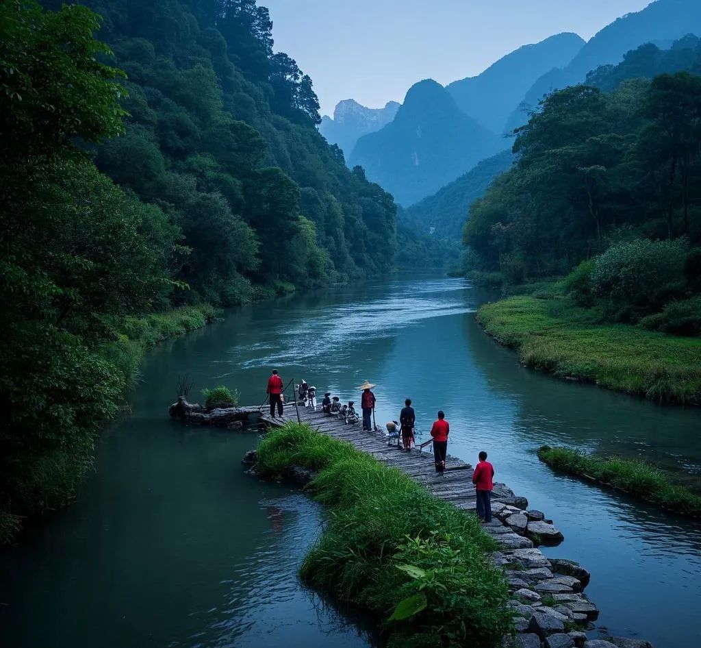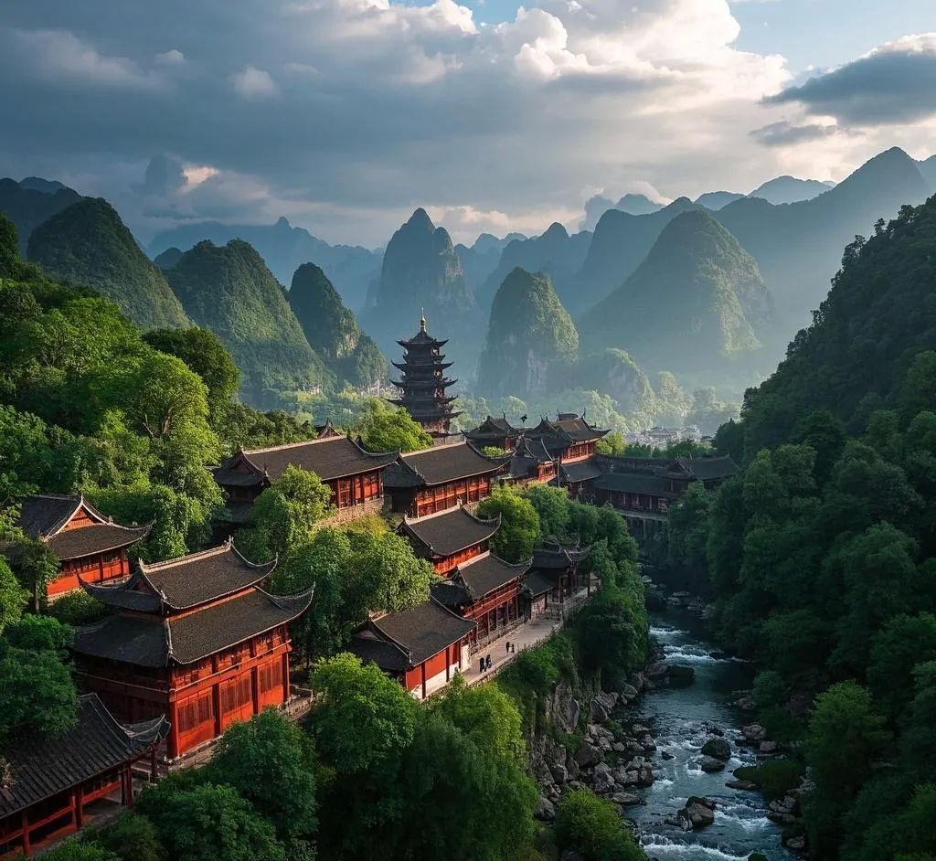 千年古镇保留着明清时期的吊脚楼和青石板路,夜晚的酒吧街和烧烤摊充满烟火气。特色活动包括竹筏漂流、古装旅拍,以及“世界最大睡观音”的探秘,兼具文艺与野趣。