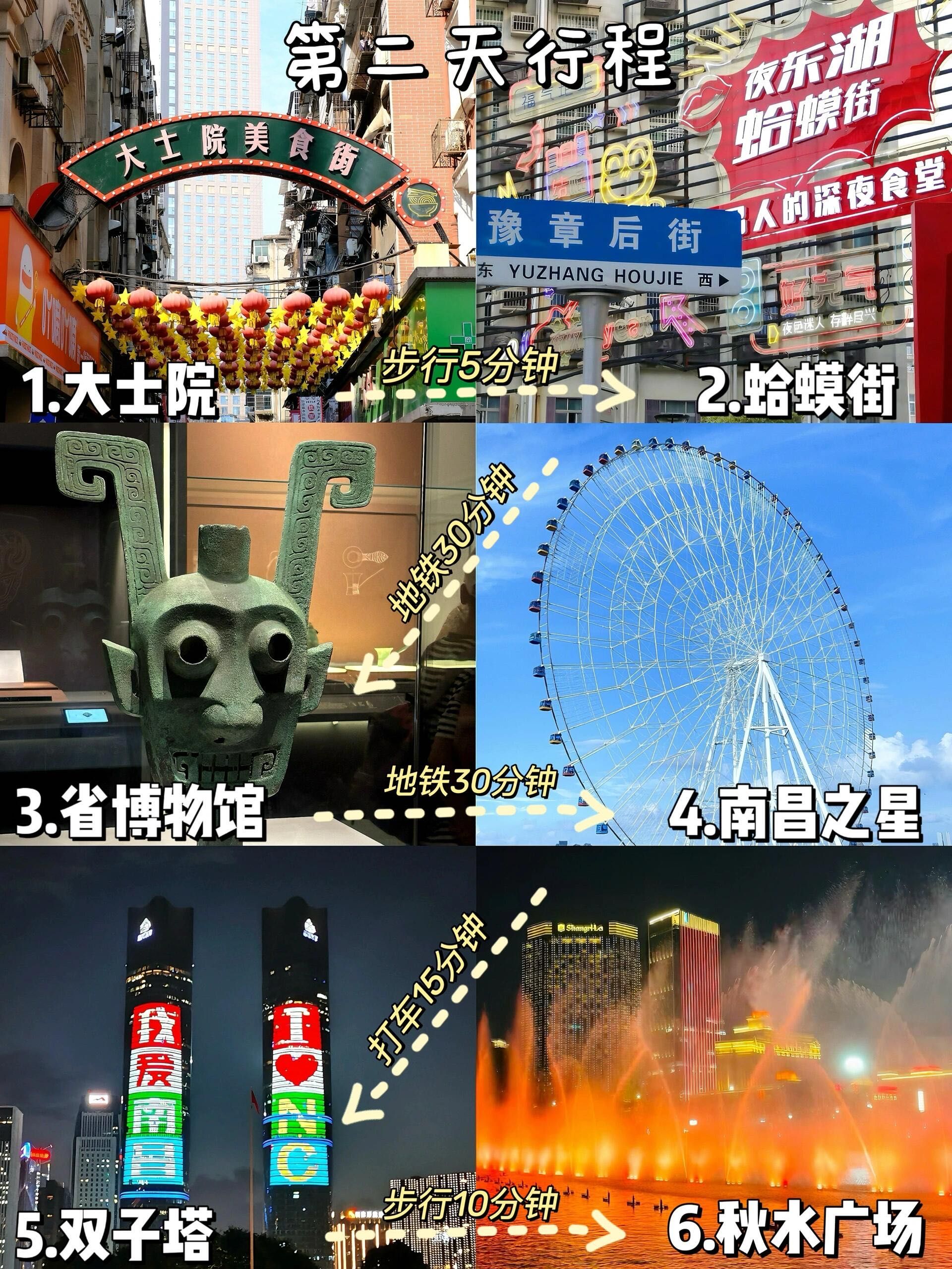 贴士:傍晚乘坐可赏日落与夜景,摩天轮下南昌万象城适合购物。