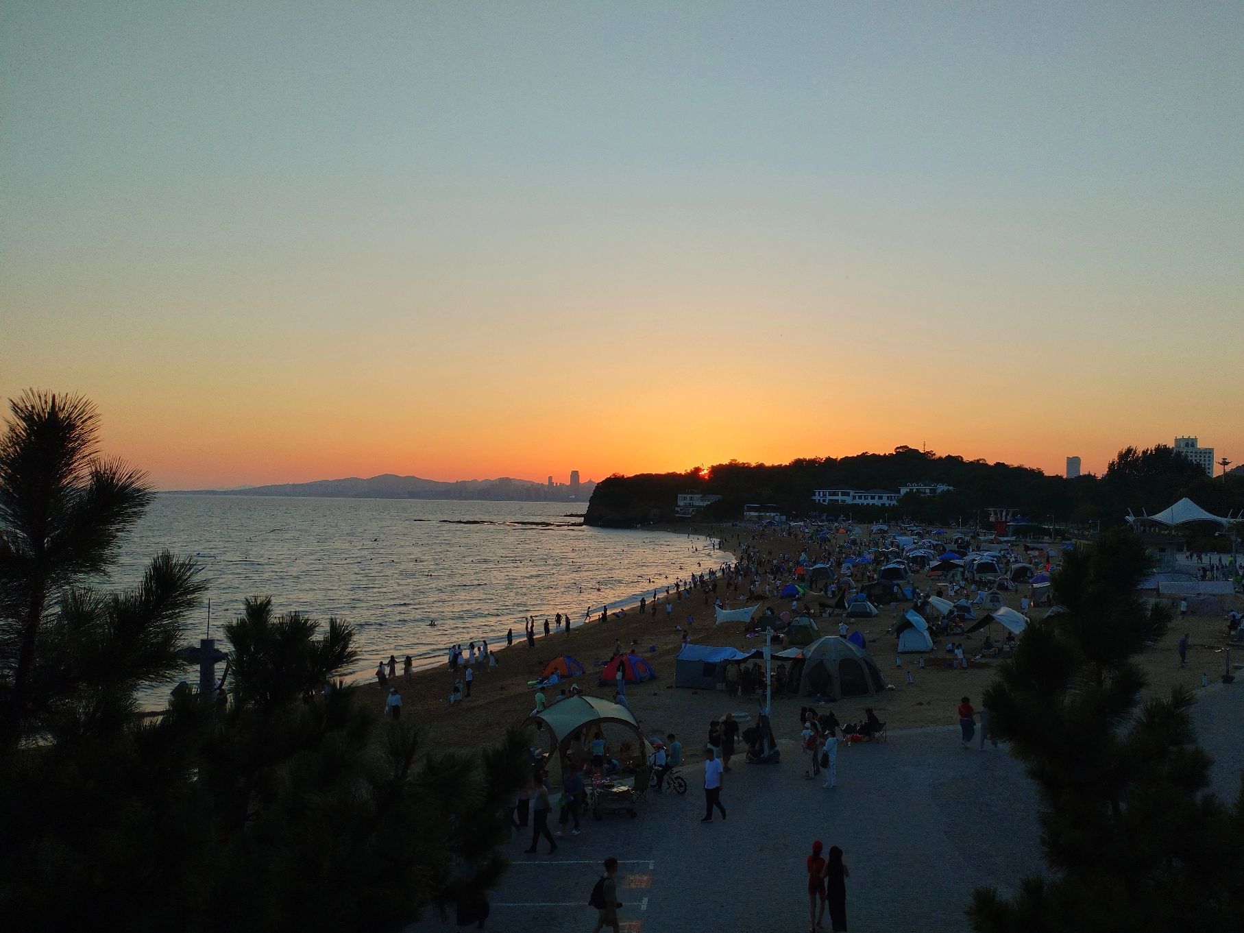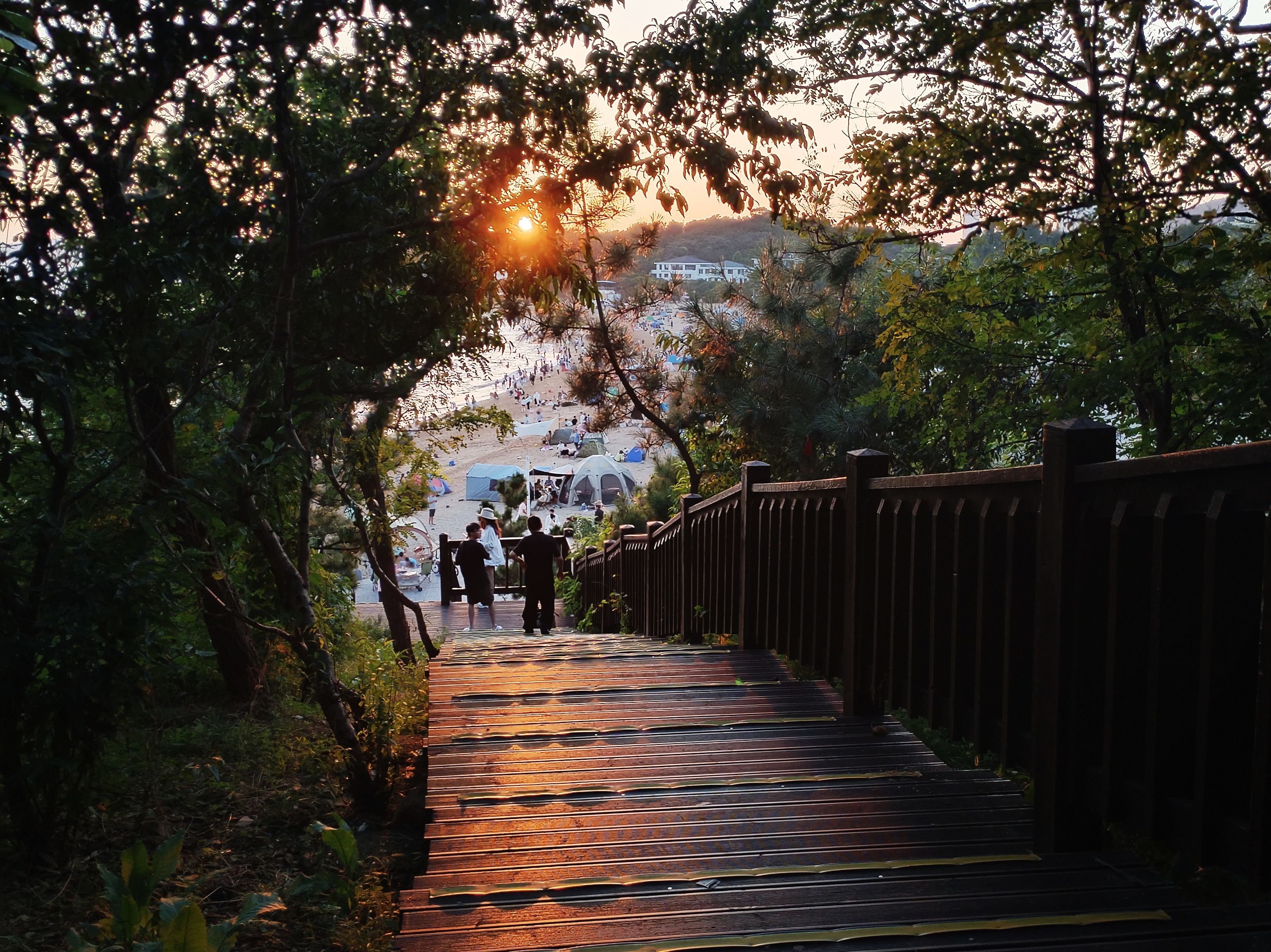夕阳西下,休闲的人们形成了美丽的剪影,投射到沙滩上,投射到窗户里,投射到我的眼里!