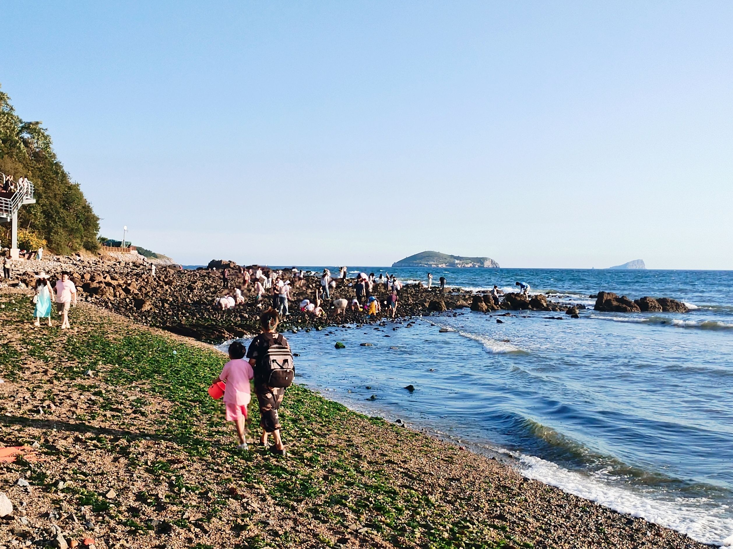 另一处礁石上开满了“赶海”的人们。