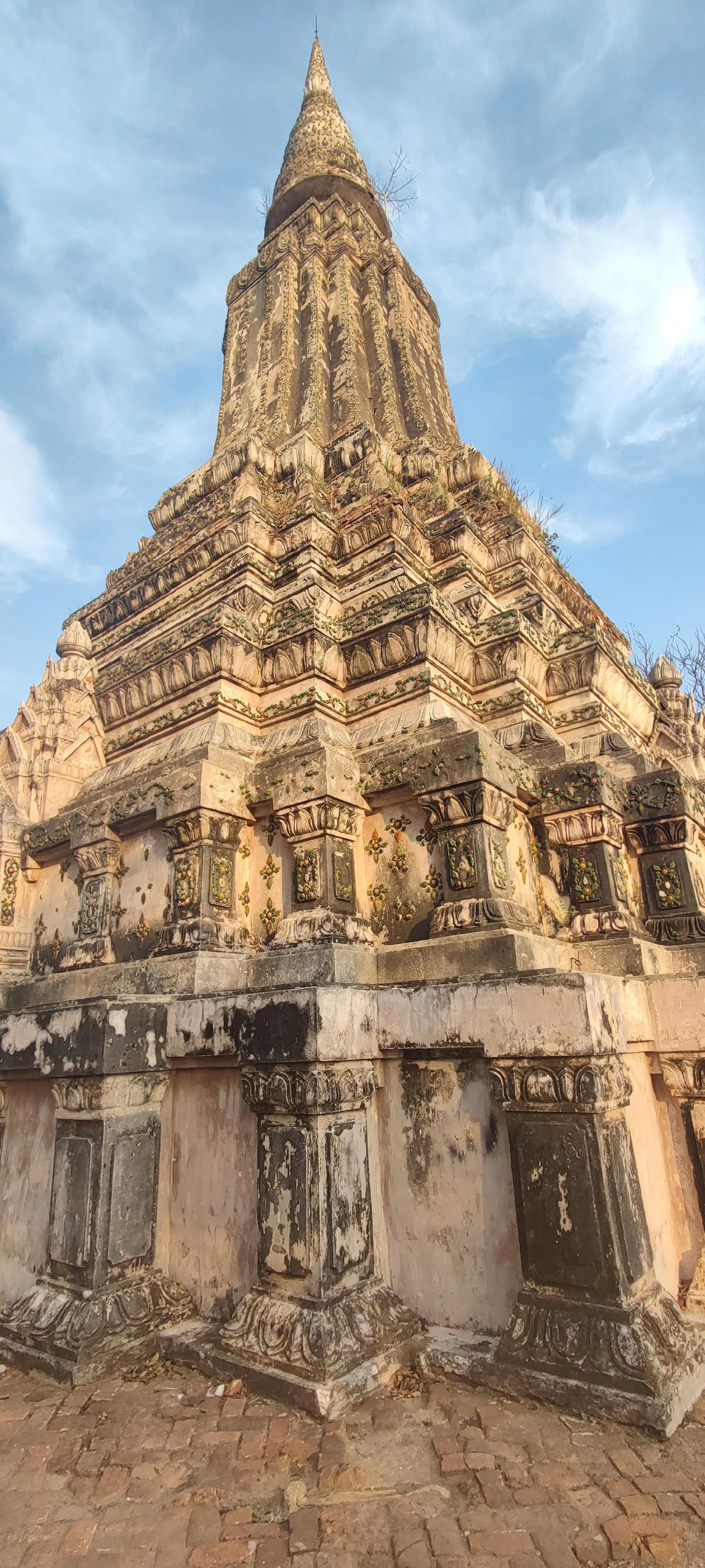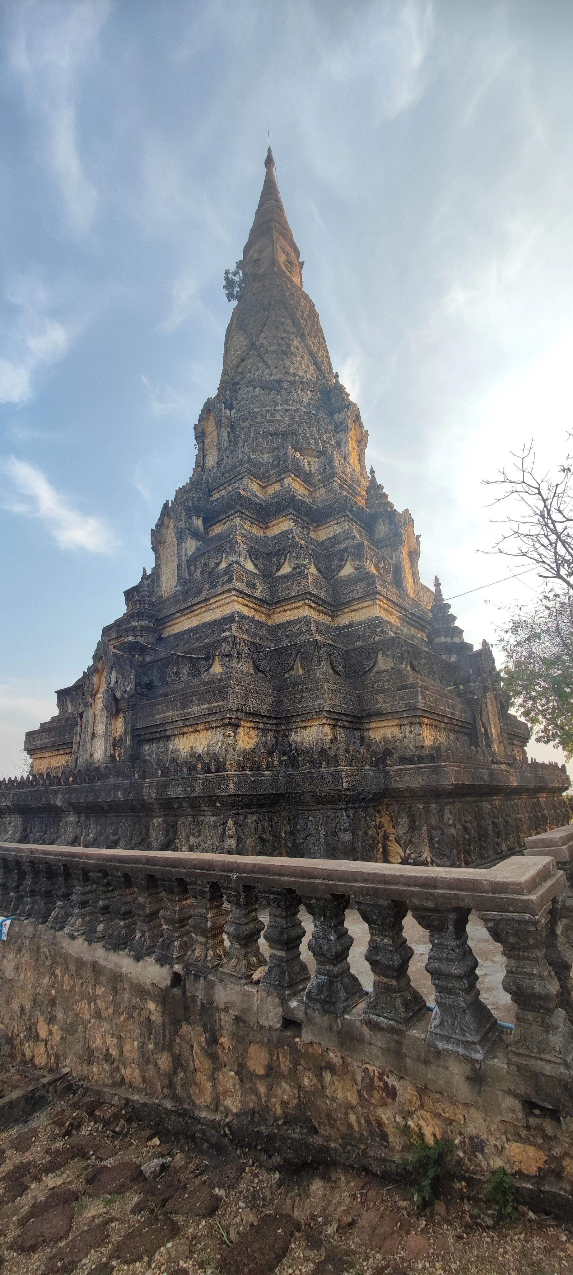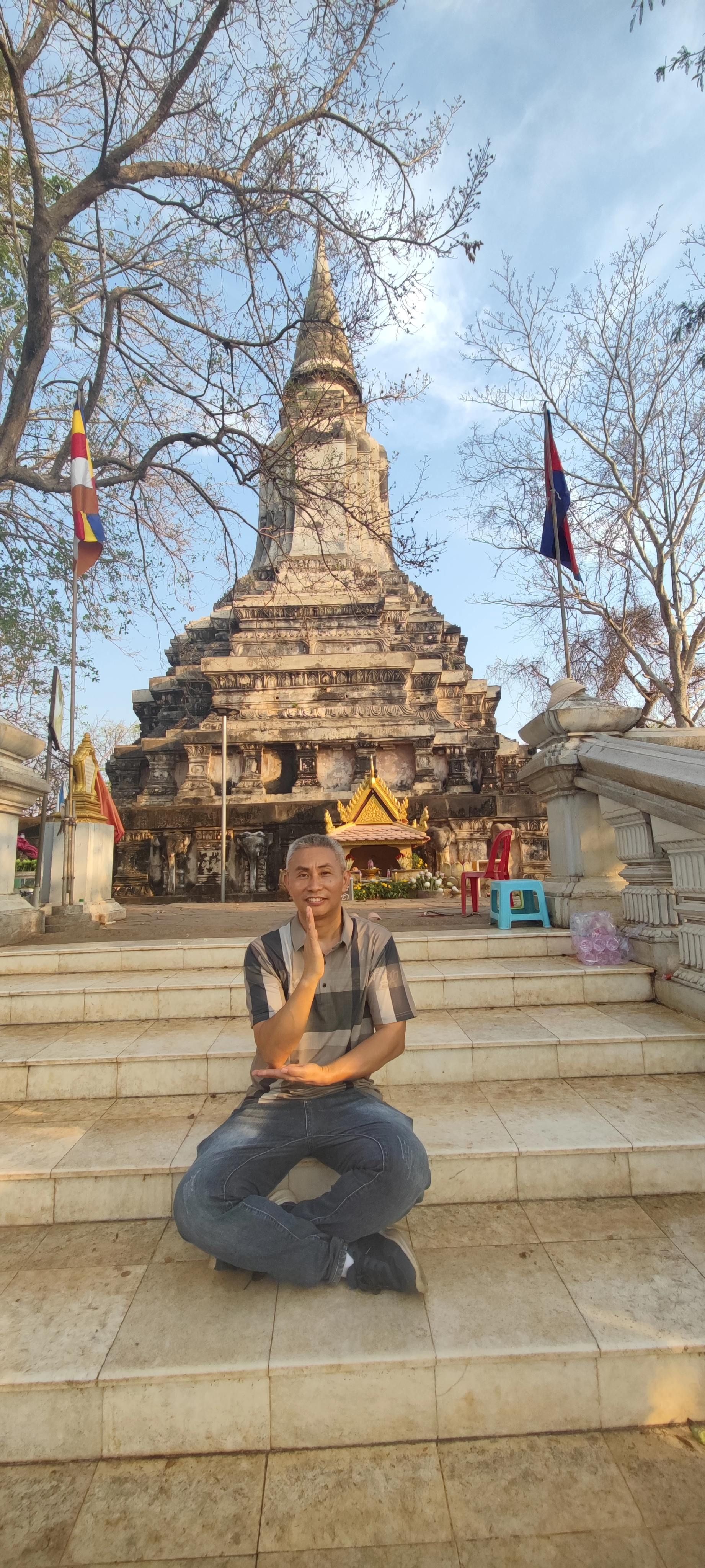 当夕阳为山峦镀上金边,站在乌栋山顶眺望,可见湄公河如银色缎带蜿蜒至天际。脚下散落的砖石间,孔雀王朝的狮像与印度教林迦共存,佛教经幡在废墟上飘扬。这里没有吴哥的恢弘,却多了一份破碎的诗意:断裂的廊柱是王朝的句读,风化的浮雕是庶民的史诗。