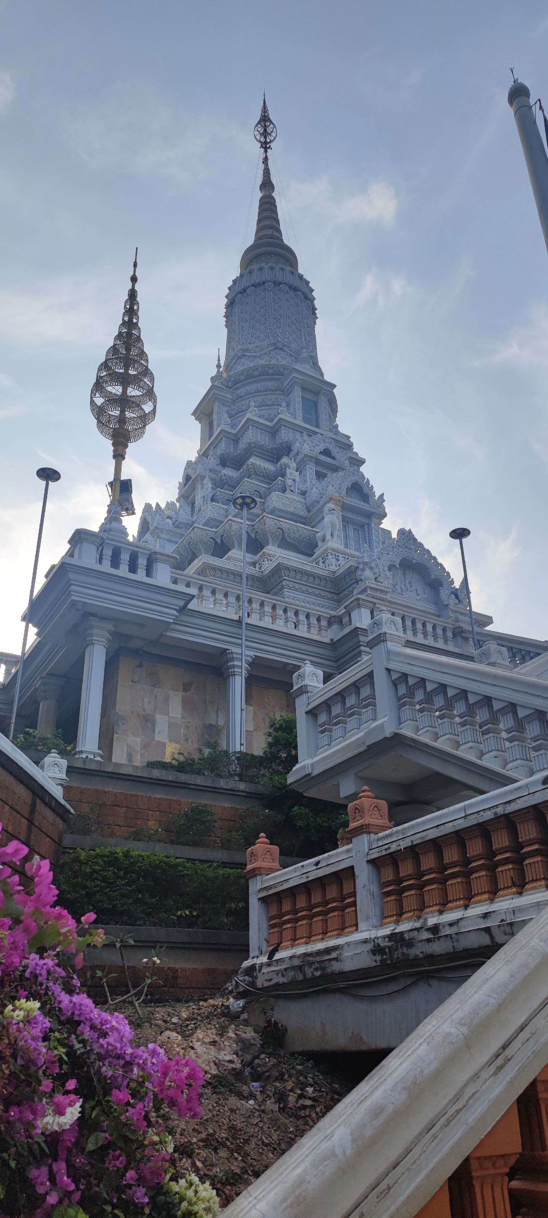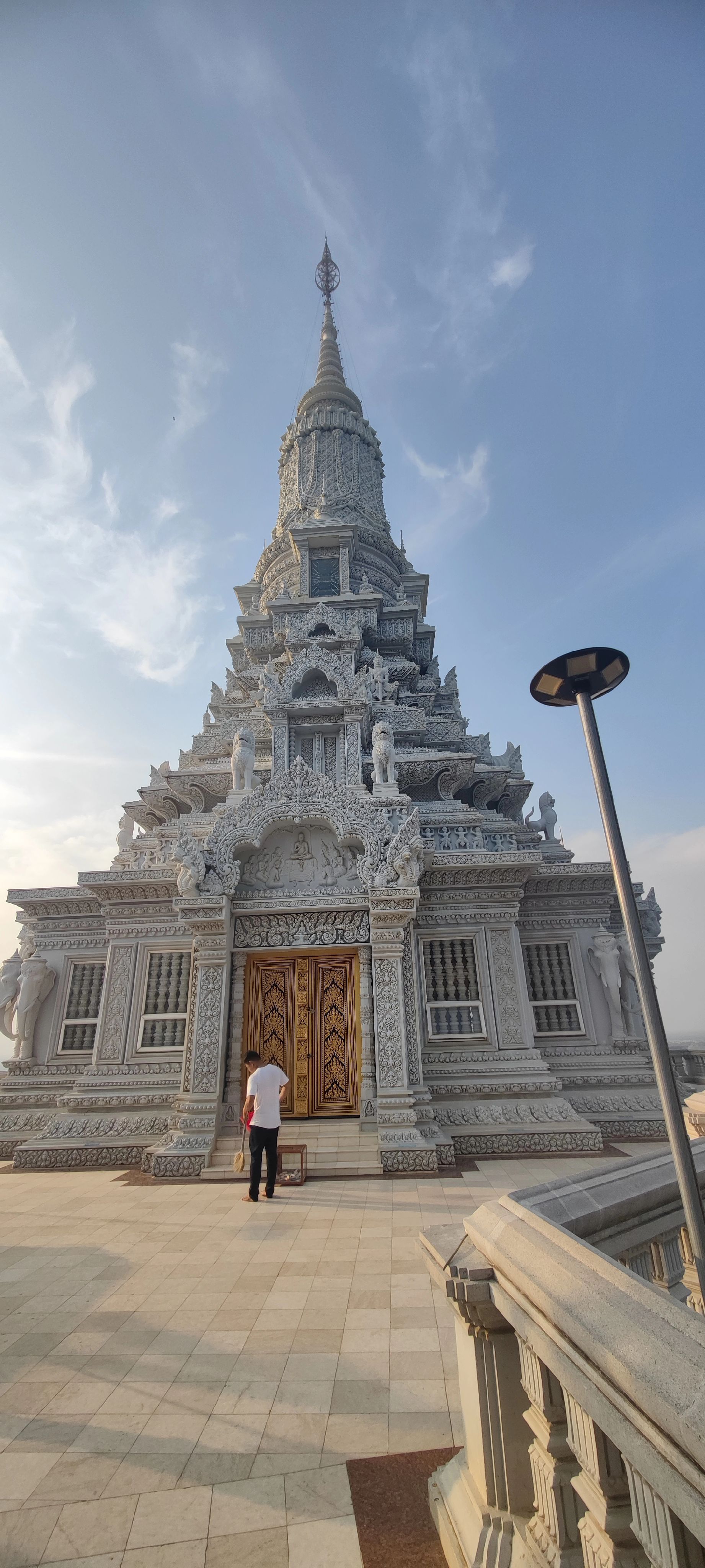 17世纪至19世纪,乌栋山曾是柬埔寨王权的中心。当吴哥的光辉逐渐褪去,历代国王将都城迁至这座风水宝地,试图在战乱与殖民阴影中重振高棉的荣光。山间散落的残破宫殿基座与斑驳砖石,依稀勾勒出昔日的皇家威仪。最引人驻足的是两座并立的白色巨佛塔——**Athareu寺**与**Preah Athareu寺**,它们如同沉默的守护者,俯瞰山下平原。传说塔中供奉着佛陀舍利,更暗藏皇室遗骨,让乌栋山成为连接人间与神界的桥梁。