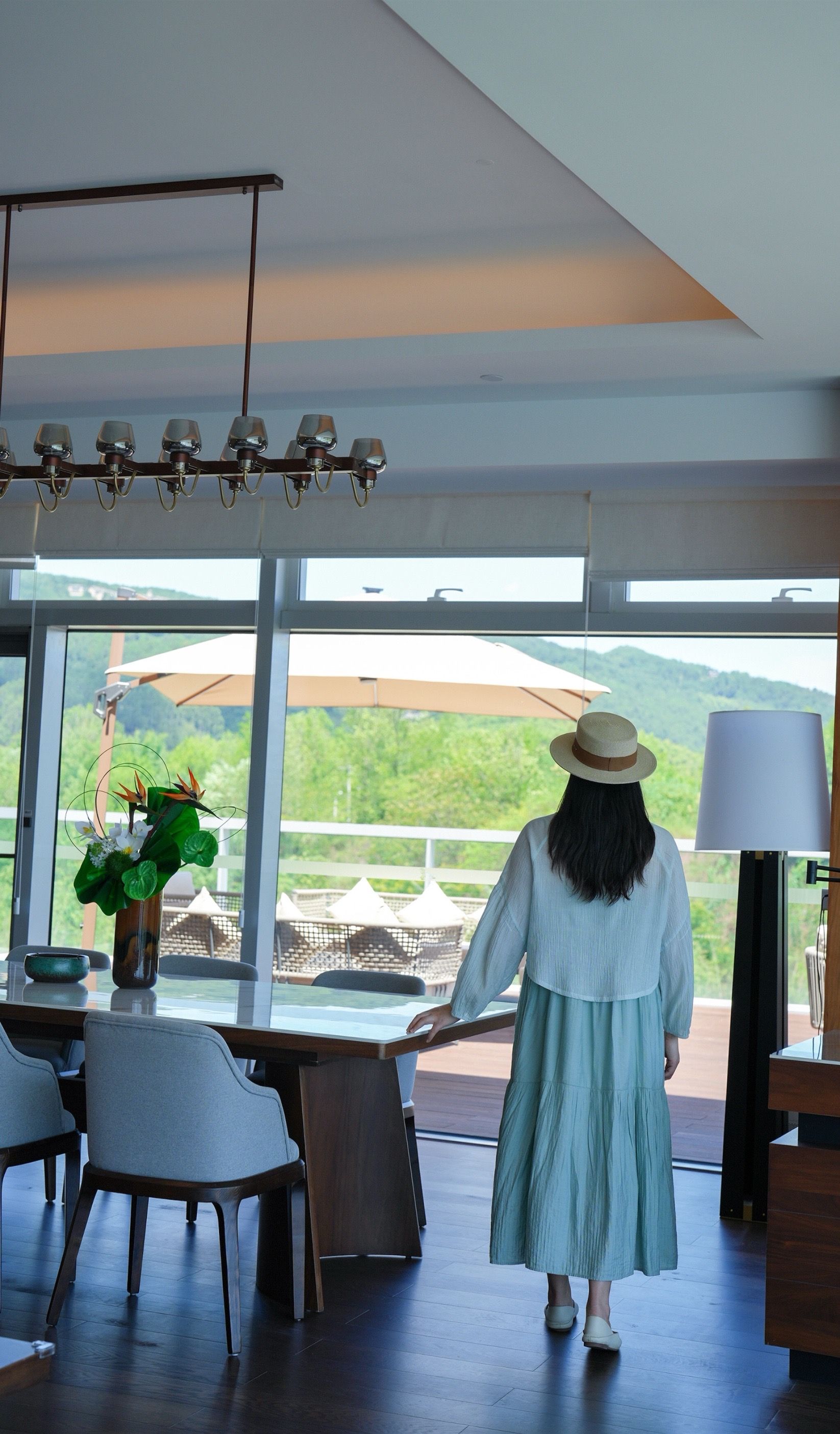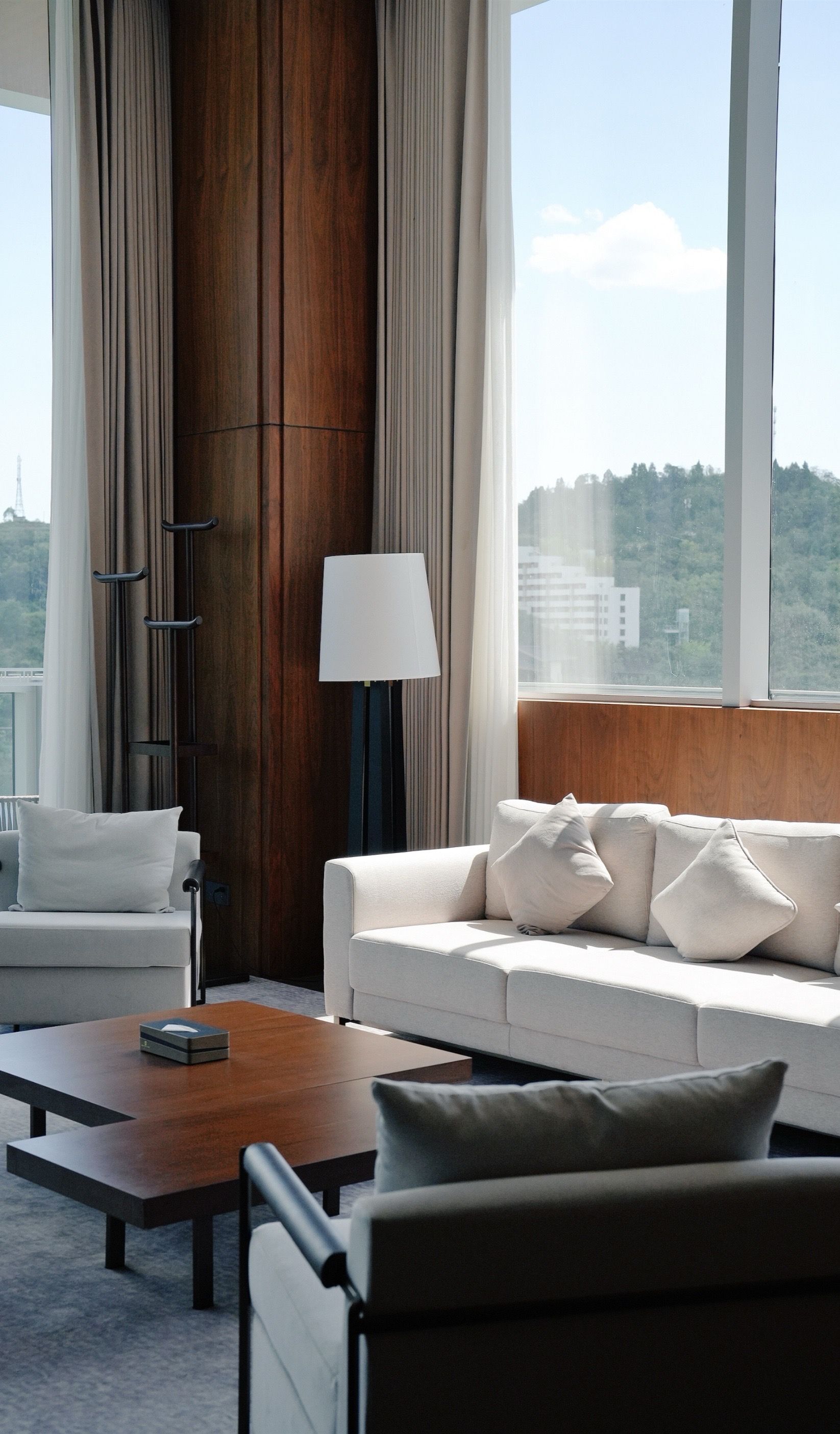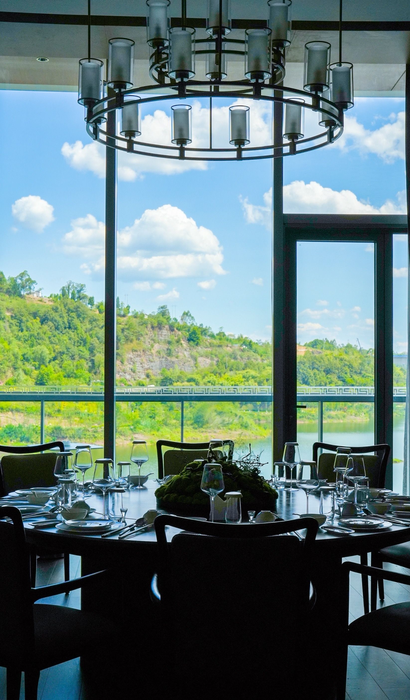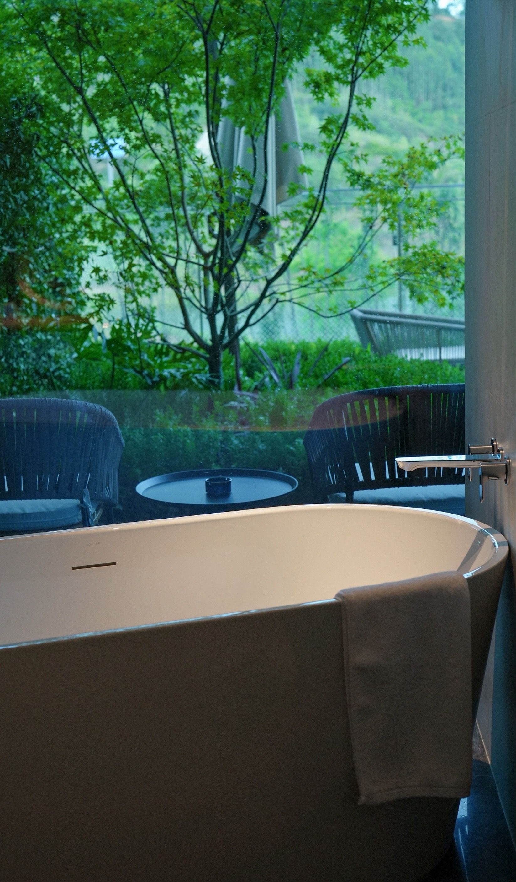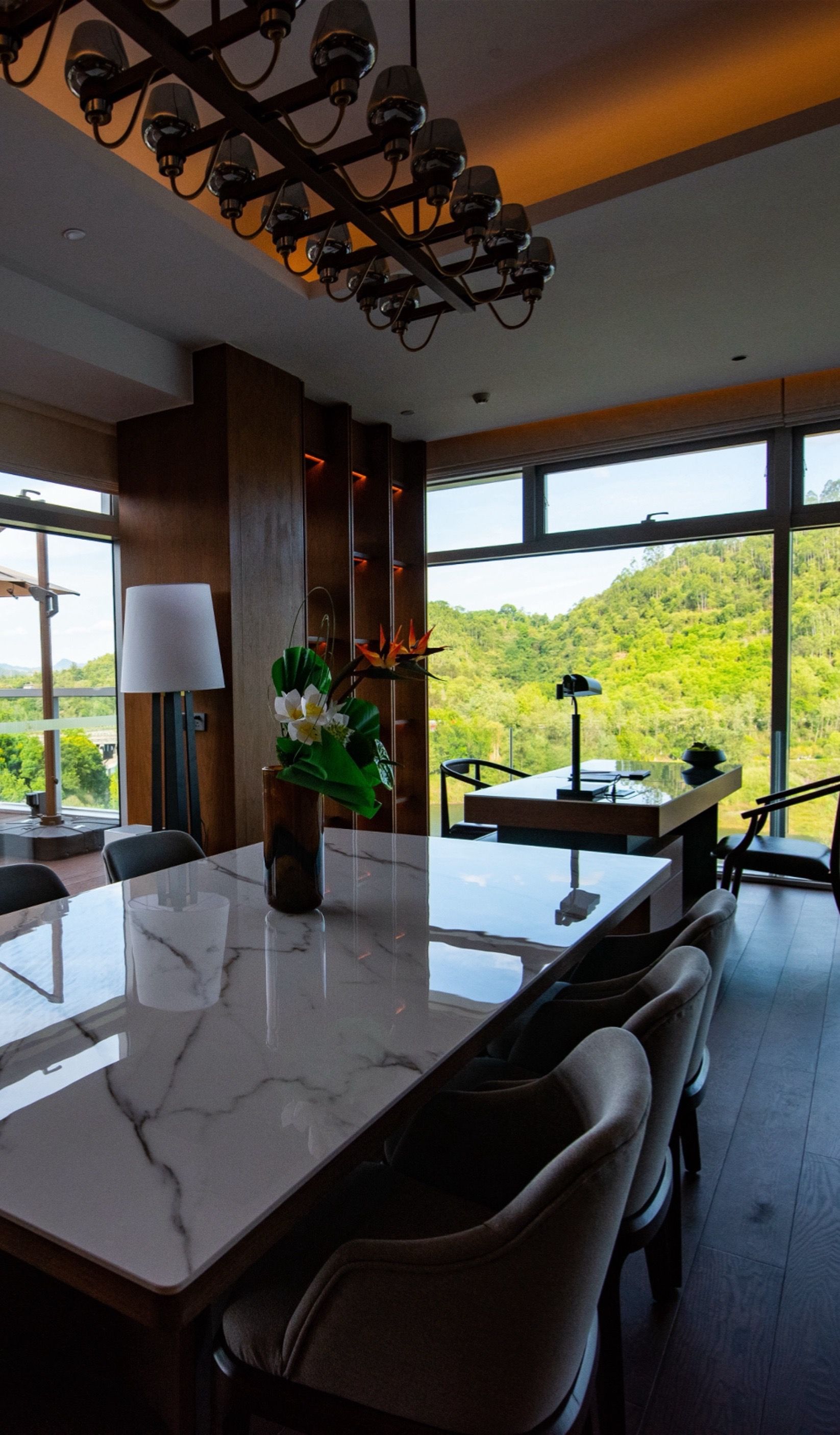 95%以上的房间配备揽景阳台、露台或花园。我们入住的湖景行政套房正好俯瞰整个慧谷湖,湖光山色触手可及,宛如置身于天然水墨画中。房间内采用了先进的智能系统,从灯光调节到窗帘控制,一键即可实现便捷操作。全套科勒卫浴更显品质,细节处处体现着科技与美学的融合。清晨从鸟鸣中自然醒来,推开落地窗,湖面氤氲着薄雾,宛若仙境。看日出慢慢的从山间升起,一点点染金湖面,让整个人的心都变得宁静了。亲子出行的话也可以选一楼的特色亲子房,明亮活泼的主题设计与玩偶布置,定能赢得小朋友的欢心。