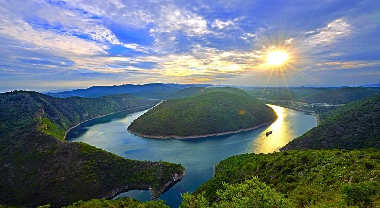 丹江大观苑处于淅川县境内,山峦丘陵居多,雁口峡,云岭峡,太白峡!隶属八百里伏牛山一分支,弯曲绵延数千米!三峡两岸巍巍青山雄伟袭来!三个峡口相辅相成,相得益彰,山间小道凉风习习,风景秀丽!各种树木郁郁葱葱,知了猴没日没夜的在树间聒噪!百灵鸟婉转唱着情歌,斑鸠们悠闲自得附和几声!几只野兔飞快穿过公路没入丛林中,太阳没有那么爆烈温柔了许多!