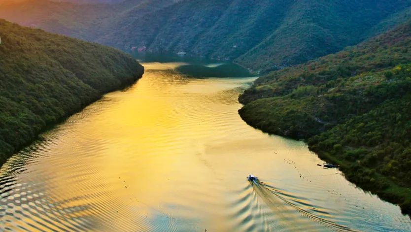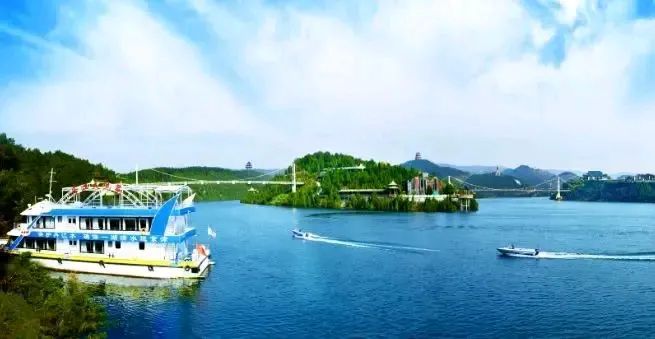 南水北调源头就是渠首的丹江水,水清澈见底!山峦叠翠,江景如画!江水如练缎!游船过后泛出层层波澜!