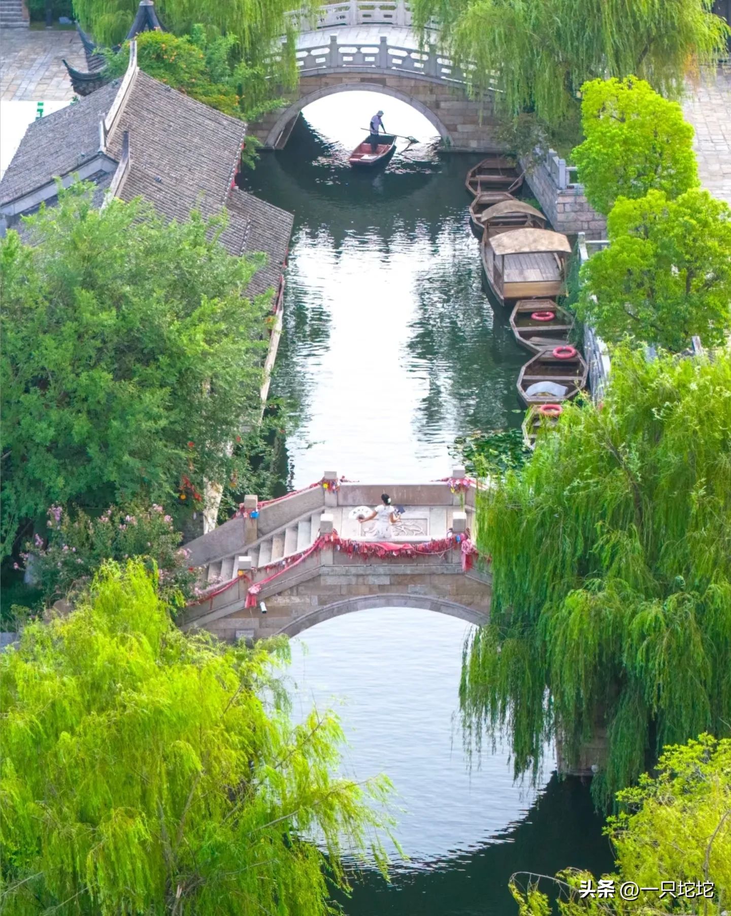 青石板路蜿蜒,小桥流水相依,随手一拍都是江南水墨画。建议穿汉服来逛,衣袂飘飘间,仿佛真的走进了古诗里的“江南小镇”。
