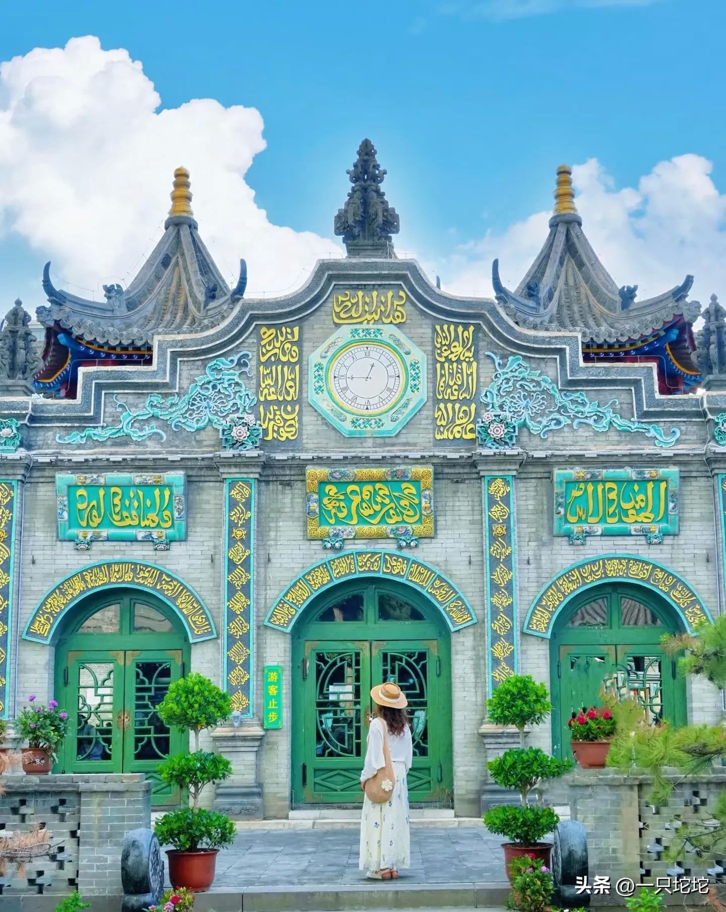 P1:清真寺,白色建筑搭配蓝天,圣洁又好看,怎么拍都高级。