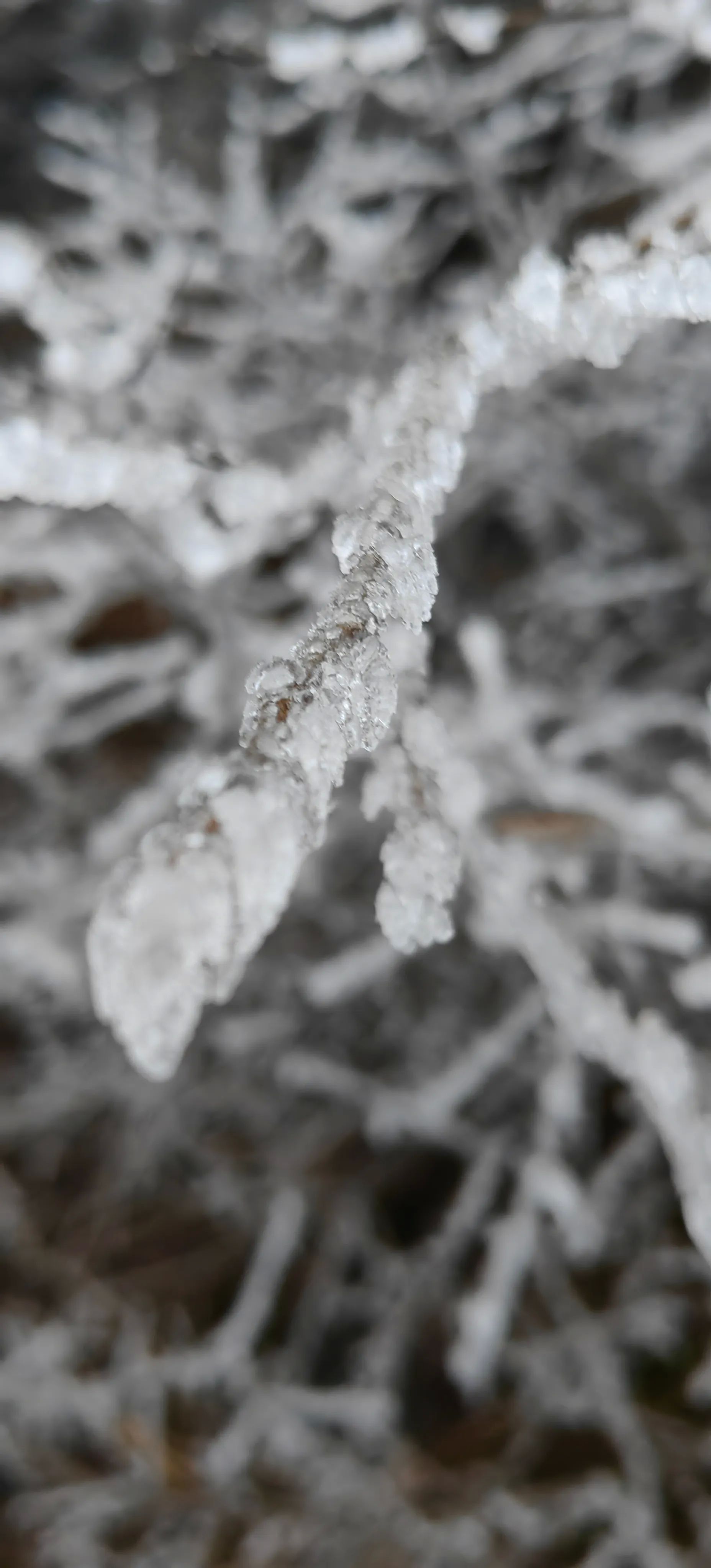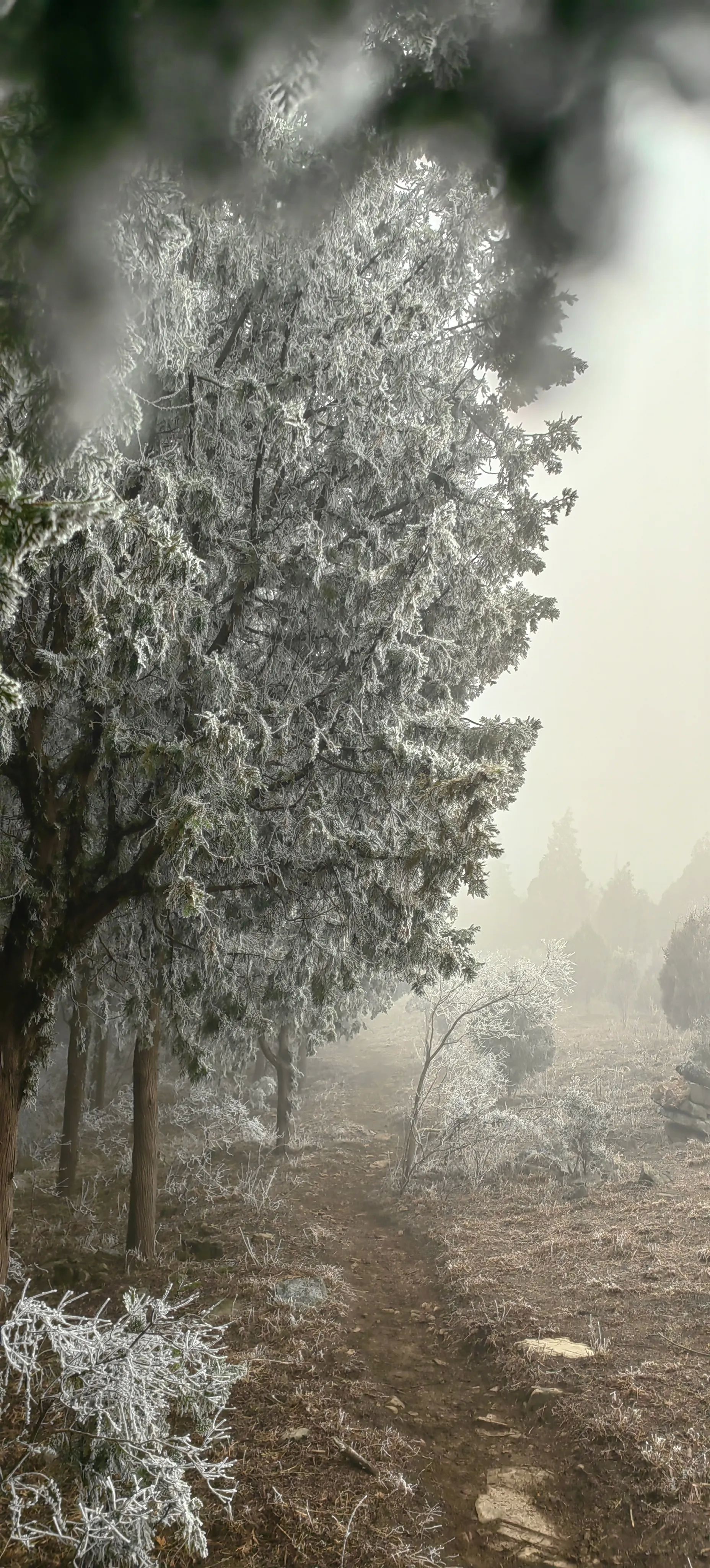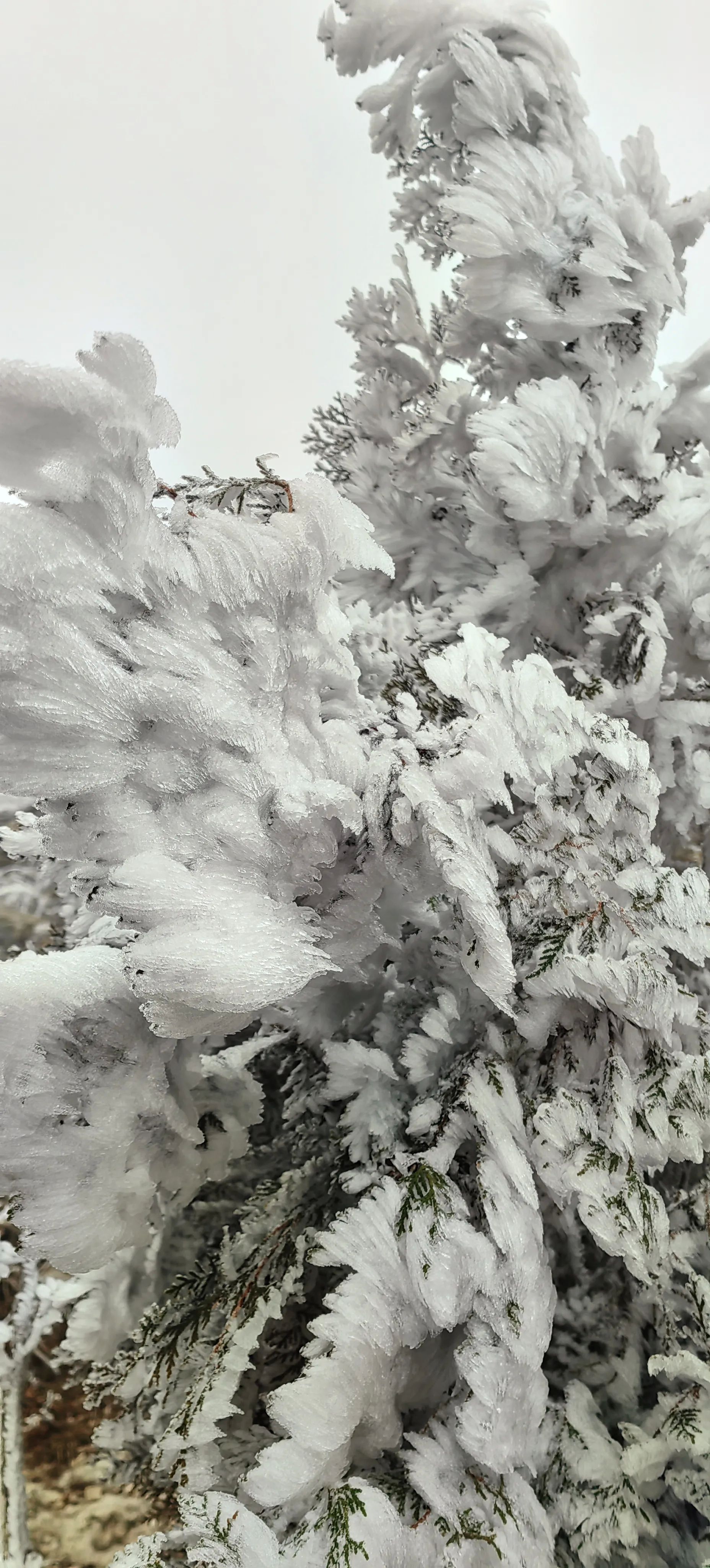 那遍布山野的雾凇,是大自然匠心独运的杰作。在枝头间,雾凇如同冰雕玉琢,晨曦微光中闪烁着梦幻般的光芒。每一片雾凇都是大自然的精心之作,有的似春蚕织梦,有的如白龙腾飞,形态各异,美轮美奂,仿佛在诉说着济南千年的故事。