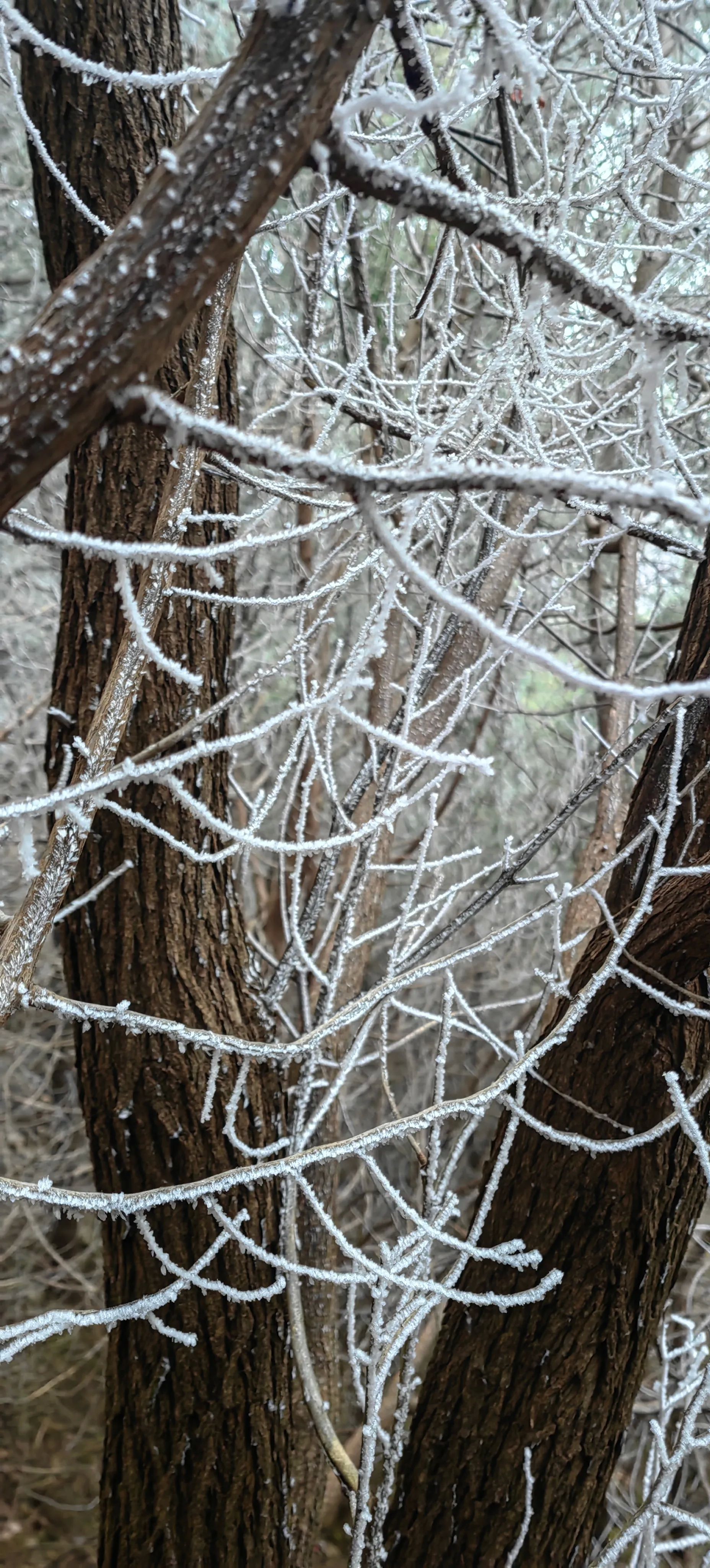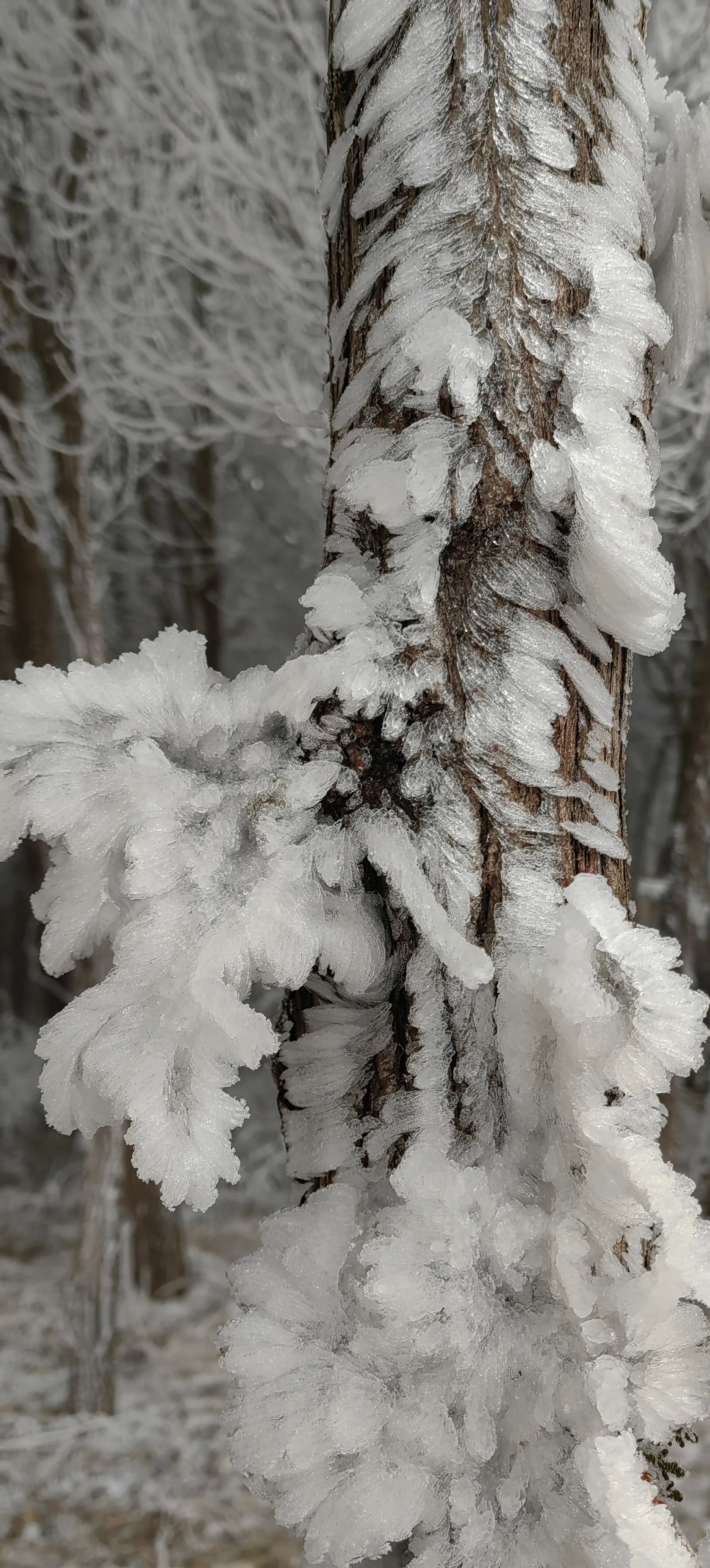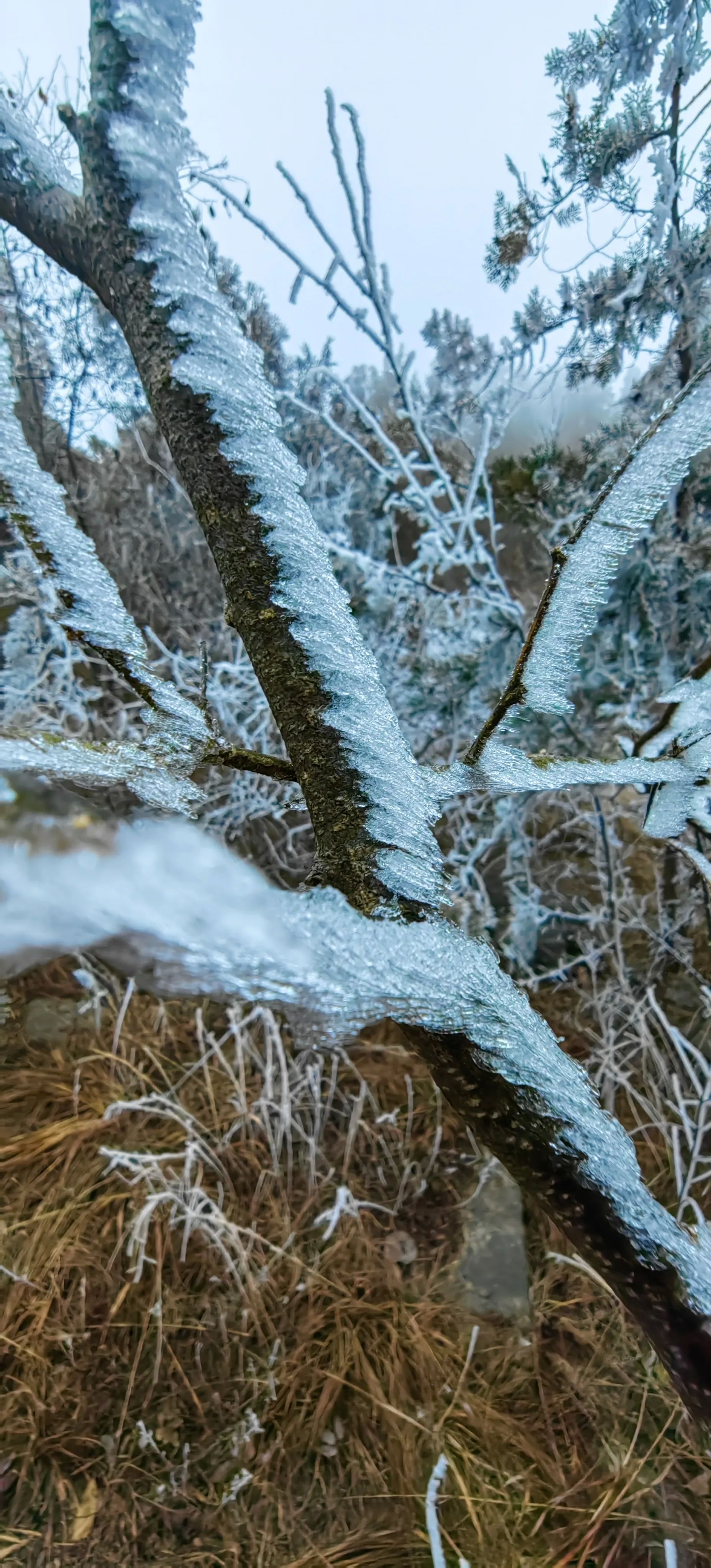 那遍布山野的雾凇,是大自然匠心独运的杰作。在枝头间,雾凇如同冰雕玉琢,晨曦微光中闪烁着梦幻般的光芒。每一片雾凇都是大自然的精心之作,有的似春蚕织梦,有的如白龙腾飞,形态各异,美轮美奂,仿佛在诉说着济南千年的故事。