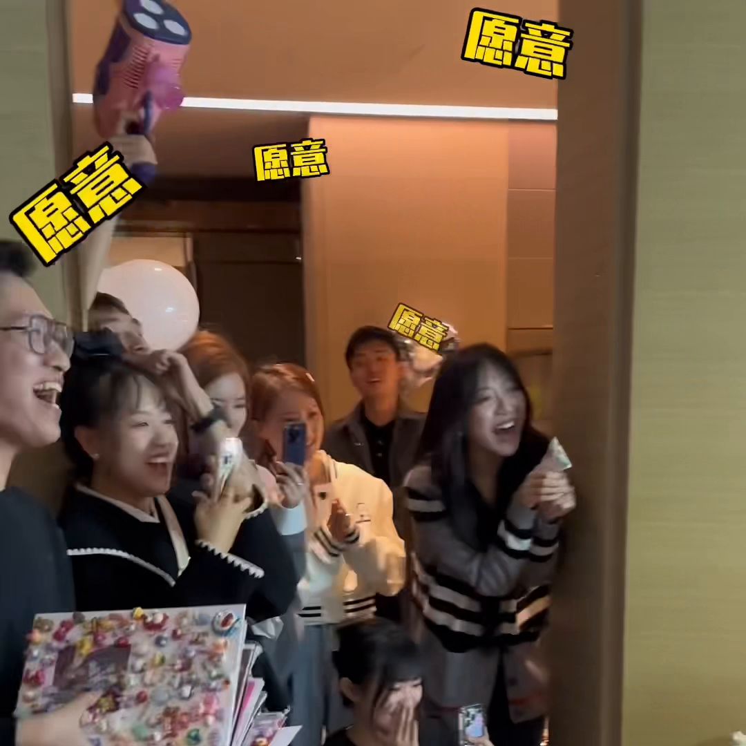 那进入主题:注意看,站在中间这个憨憨的男孩就是今天的男主角,我的男主角。2023年4月6日晚上,这会我正在家里忙工作,正好我正在家拍视频,没想到好朋友们已经开始做最后的准备了!(我的好朋友们都被提前叫去了!)你当时问什么,你愿意嫁给我吗?那就愿意愿意愿意。商量对策中,我也不知道她愿不愿意,就这么没自信?继续商量中做戏做全套。