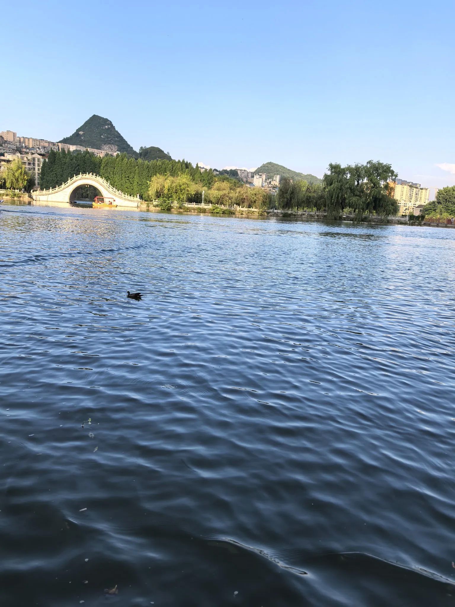没有到网红的彩虹桥,到了明湖湿地公园六盘水师范学院附近段。这一段与六盘水师范学院连成一片。徒步期间,流水哗啦,驻足小桥,阳光折射水间,波光粼粼,这时一群小鱼在桥边不停摇摆嬉戏,而且仅在阳光一面,也算成就了一番奇景。湖面,蜻蜓不时驻足停歇、不时点水而飞、不时你追我赶,孩子见了,高兴