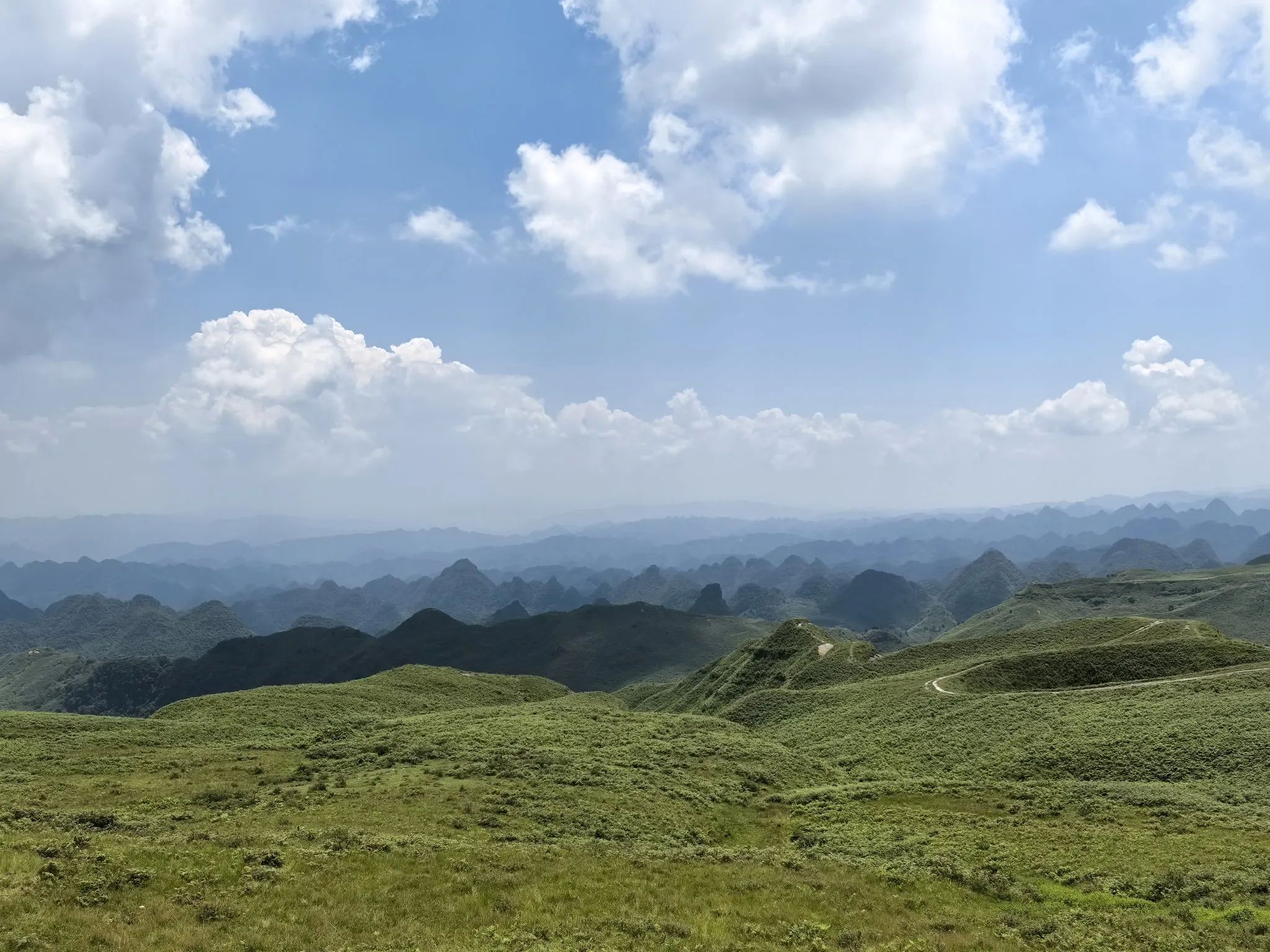 因为乌蒙大草原限流、堵车等原因,我们选择了人流相对少一点的阿西里西大草原。阿西里西大草原位于毕节市赫章县,距离六盘水市钟山区50分钟车程,有韭菜坪、二台坡两个景点。因为8月初,韭菜坪花期未至,我们最终选择了二台破。进入二台破景区,是一段十几公里的盘山公路,道路较为狭窄。