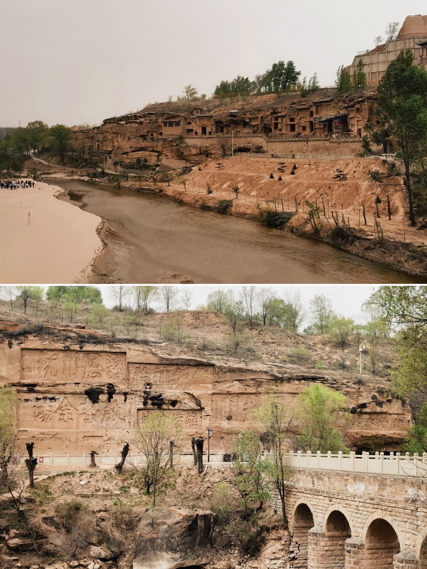 河流两侧都有碑林,东侧有石窟西侧没有,西侧还有一处浅沙滩和休息的凉亭,如果带小朋友来玩的话可以的带上挖沙或玩水的工具