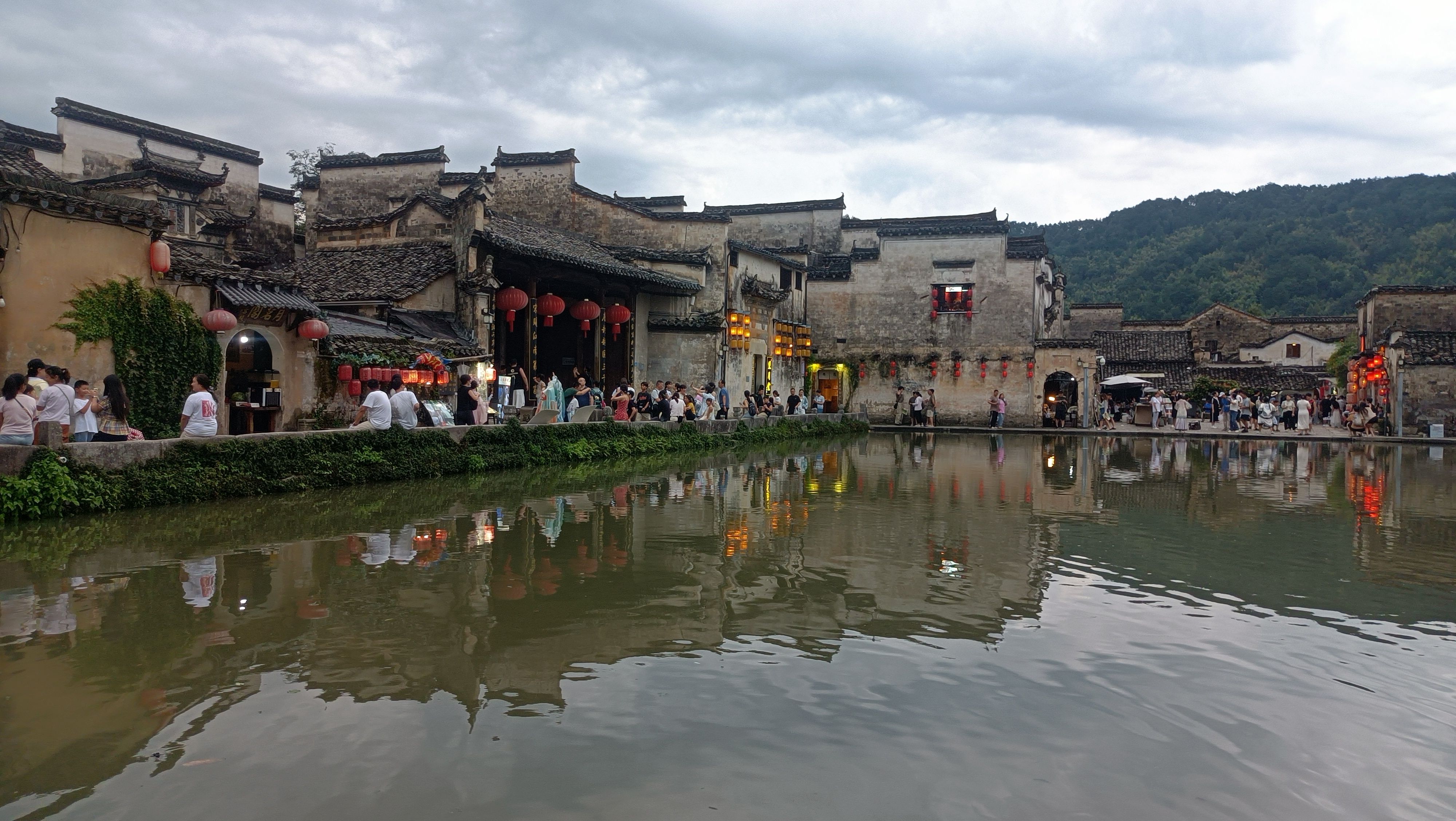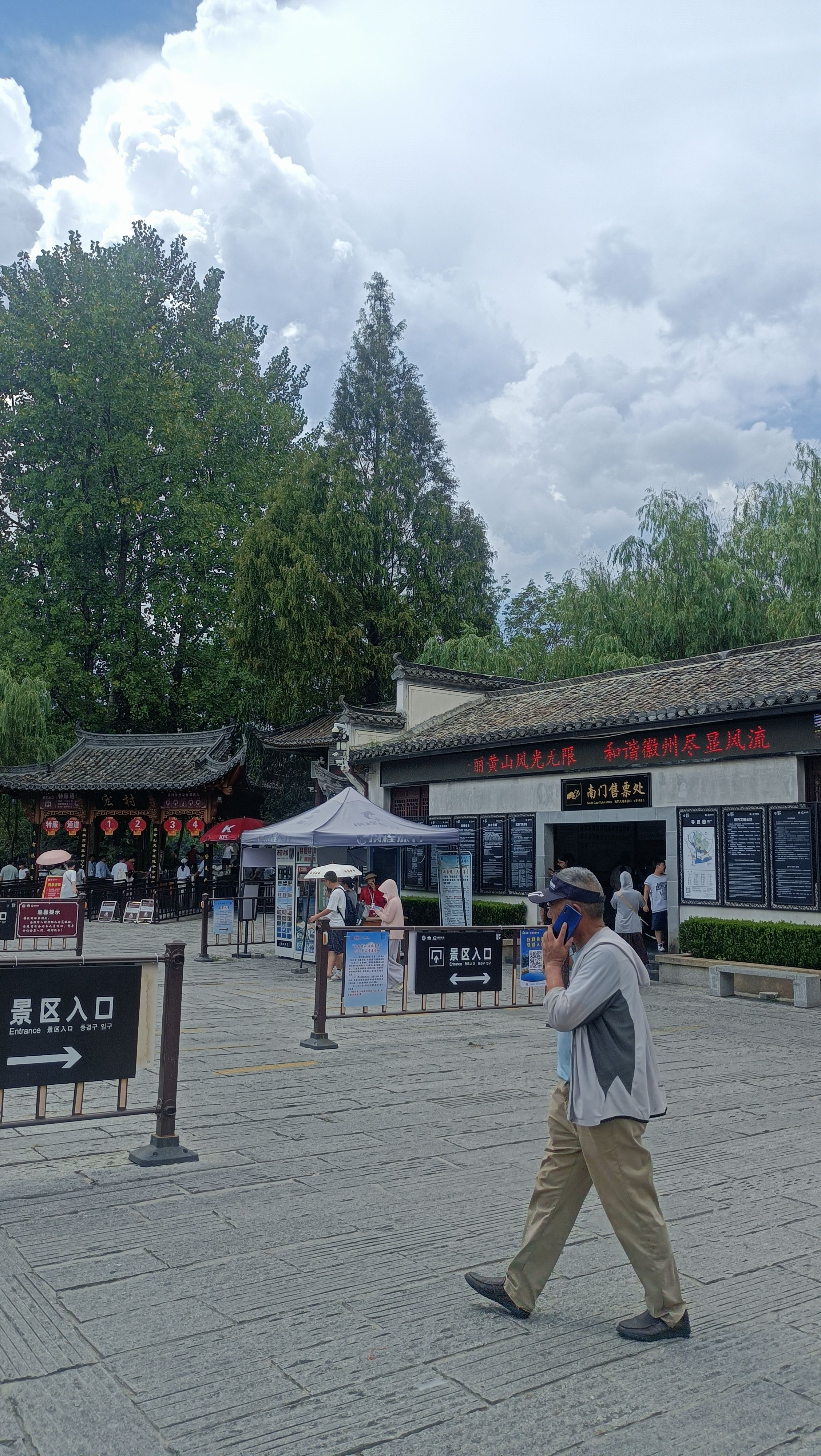 宏村,不愧为中国第一村,停车场很多很大,游人很多,管理服务也很好!说一个事例,我们第一天到的下午,刚好天气突变,大风大雨一个多小时。风大的,我们在一家饭馆吃饭,饭馆门都差一点关不上了。等雨晴之后,我们出去转,看到景区里河边路旁,几棵古树被大风连根拨起,倒在路边,好多景区工作人员已经在用电锯进行清理,一些工作人员在进行疏导游客,做的很及时。在饭馆吃饭,饭馆不大,但服务员很热情,上菜之后,问我们菜的囗味如何,吃得可囗,还送我们免费的饮料!特别是那条臭鳜鱼味道好极了!