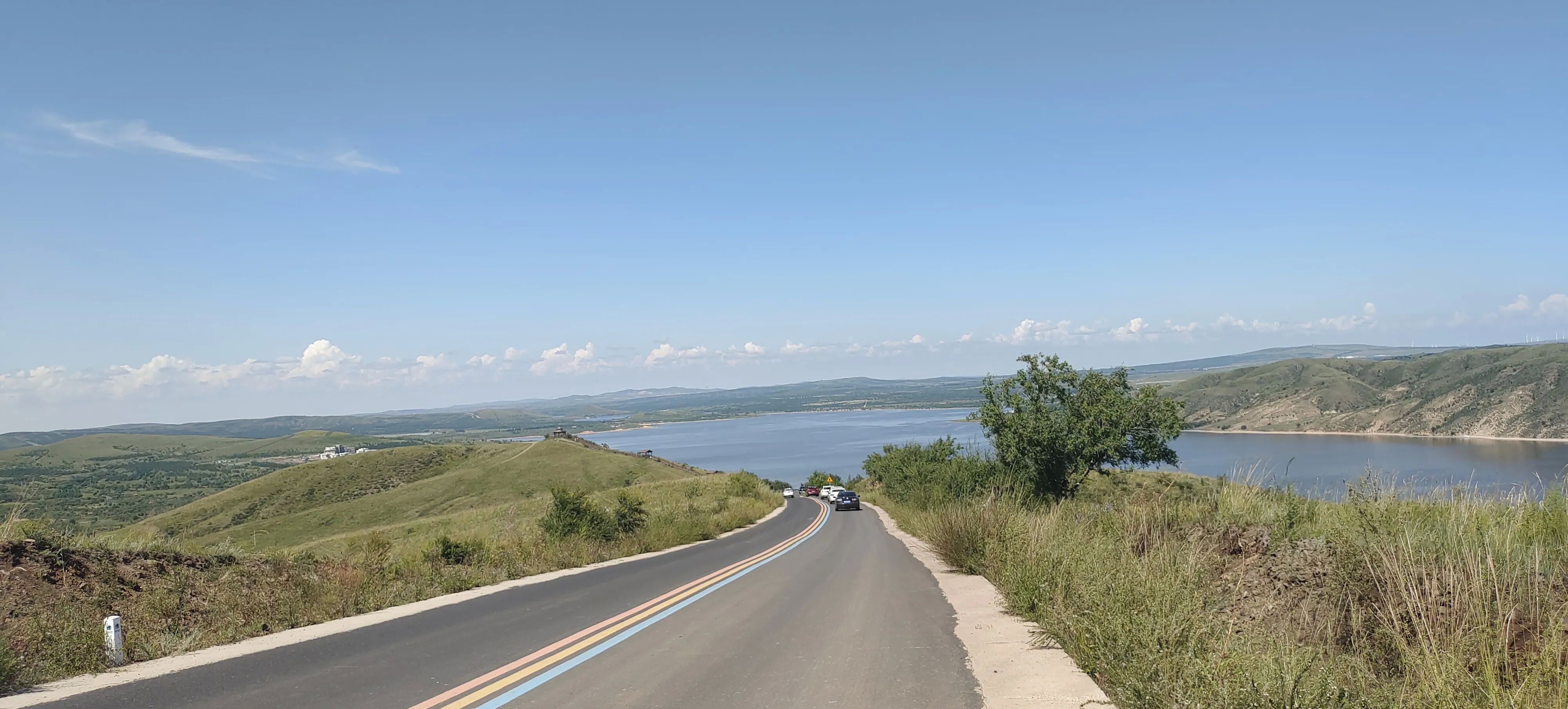 多伦湖可以驾车沿湖边环游一周,买了门票之后,从湖东岸驾车出发,沿路有观景台,随时可以停车拍照。