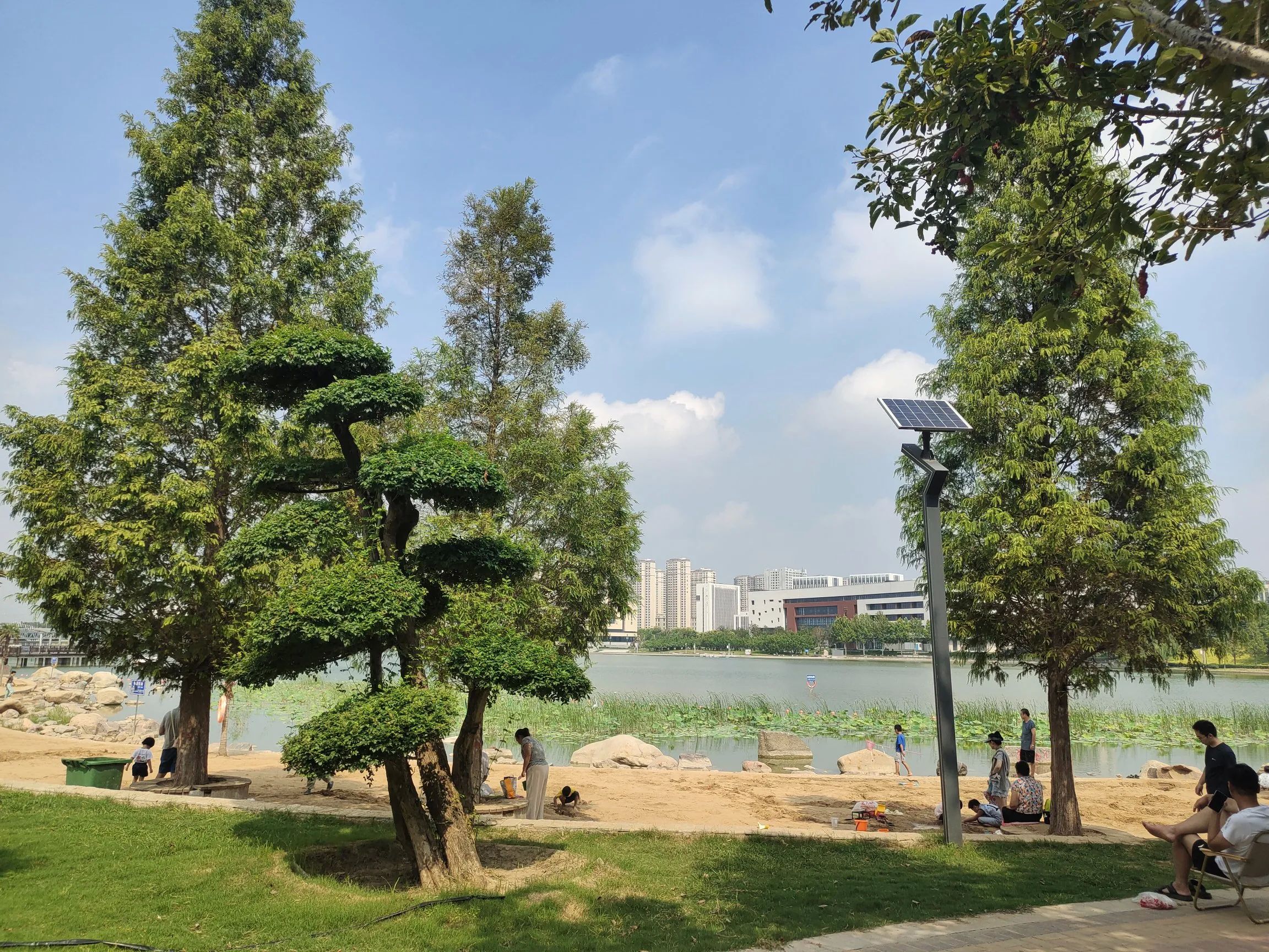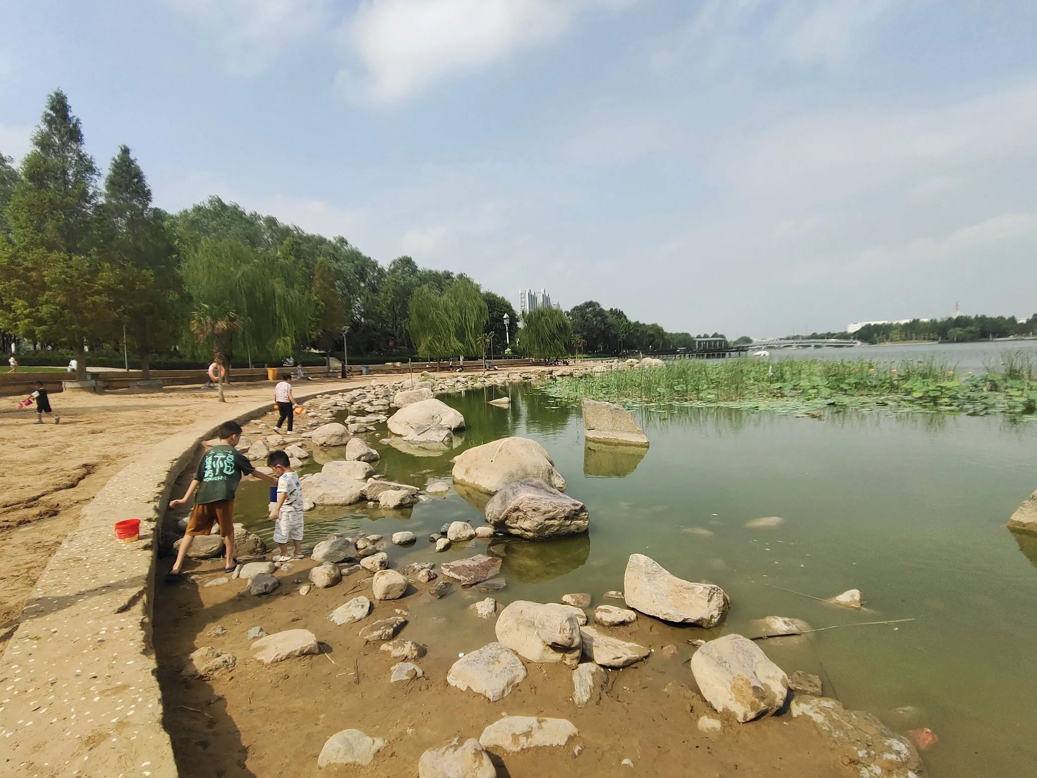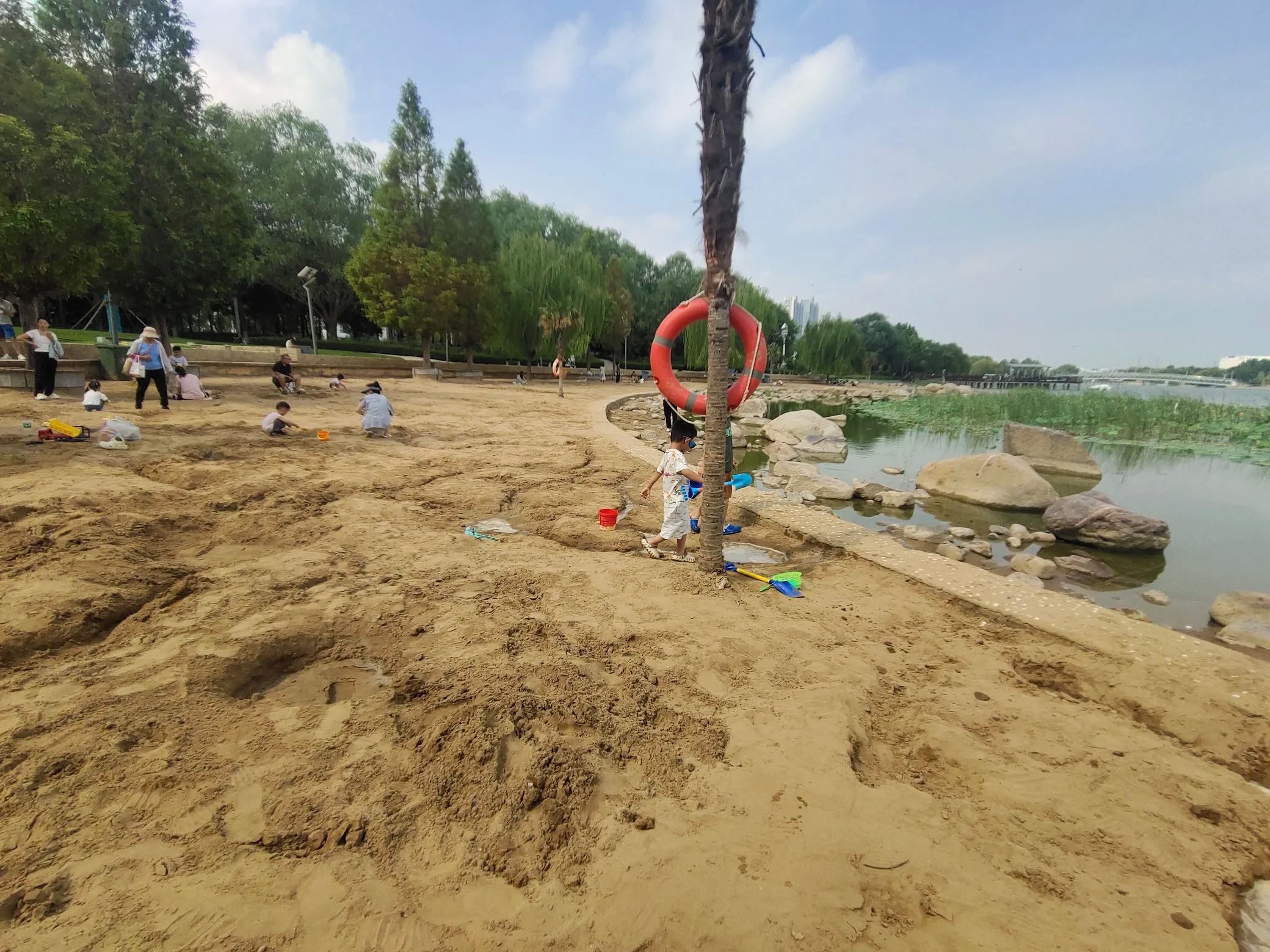 该公园沿湖建有沙滩广场。小孩子可以在沙滩上尽情玩沙,可以充分发挥自己的思维想象,堆出或者挖出不同造型的沙子造型;还可以在湖边摸鱼抓虾;是孩子游玩的理想之地,也是我家儿子首先公园。[呲牙]