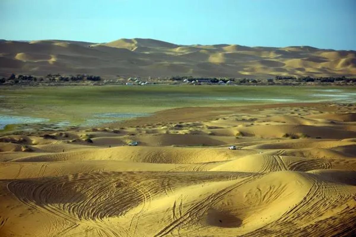 - Day2:腾格里沙漠穿越:从银川前往腾格里沙漠入沙口,参加越野车五湖连穿项目,欣赏天鹅湖的候鸟(4-5月最佳)和乌兰湖的粉红色湖水。傍晚在沙丘看日落,晚上体验沙漠露营,参加篝火晚会,观赏星空。