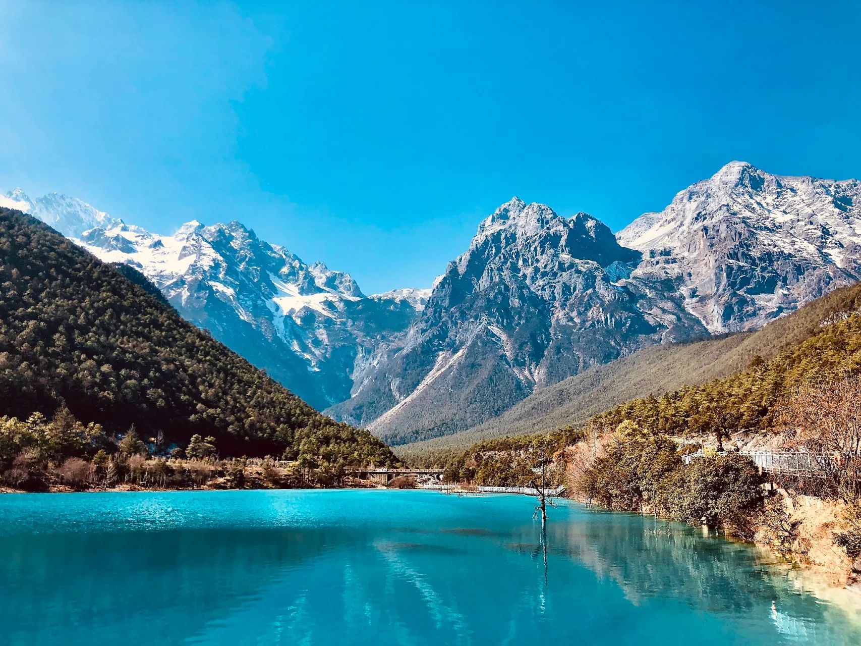 - 秋季层林尽染,冬季雪山倒影绝美。