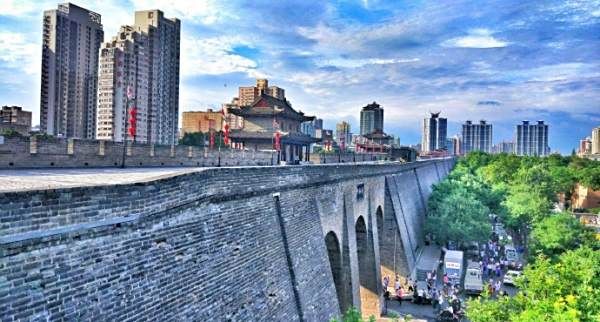 城墙周围有护城河环绕,著名的西安钟鼓楼就位于城墙中心。