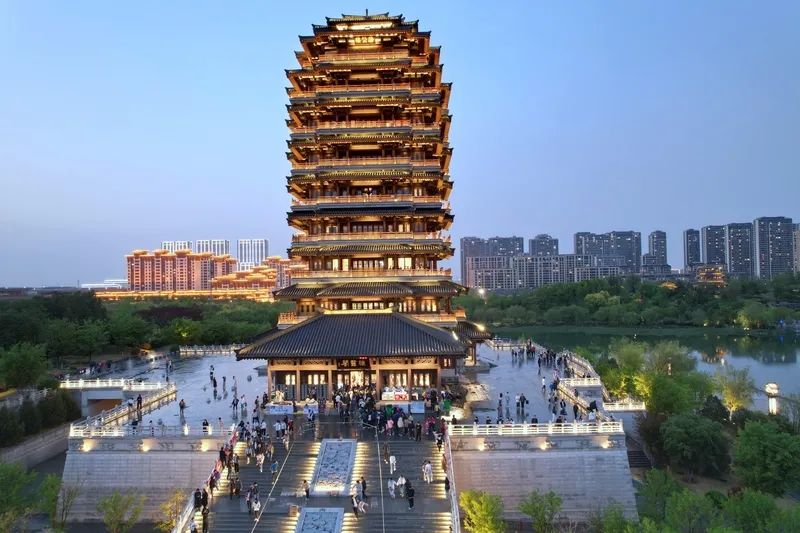 - 亮灯后拍摄全景,步行至齐盛湖公园散步