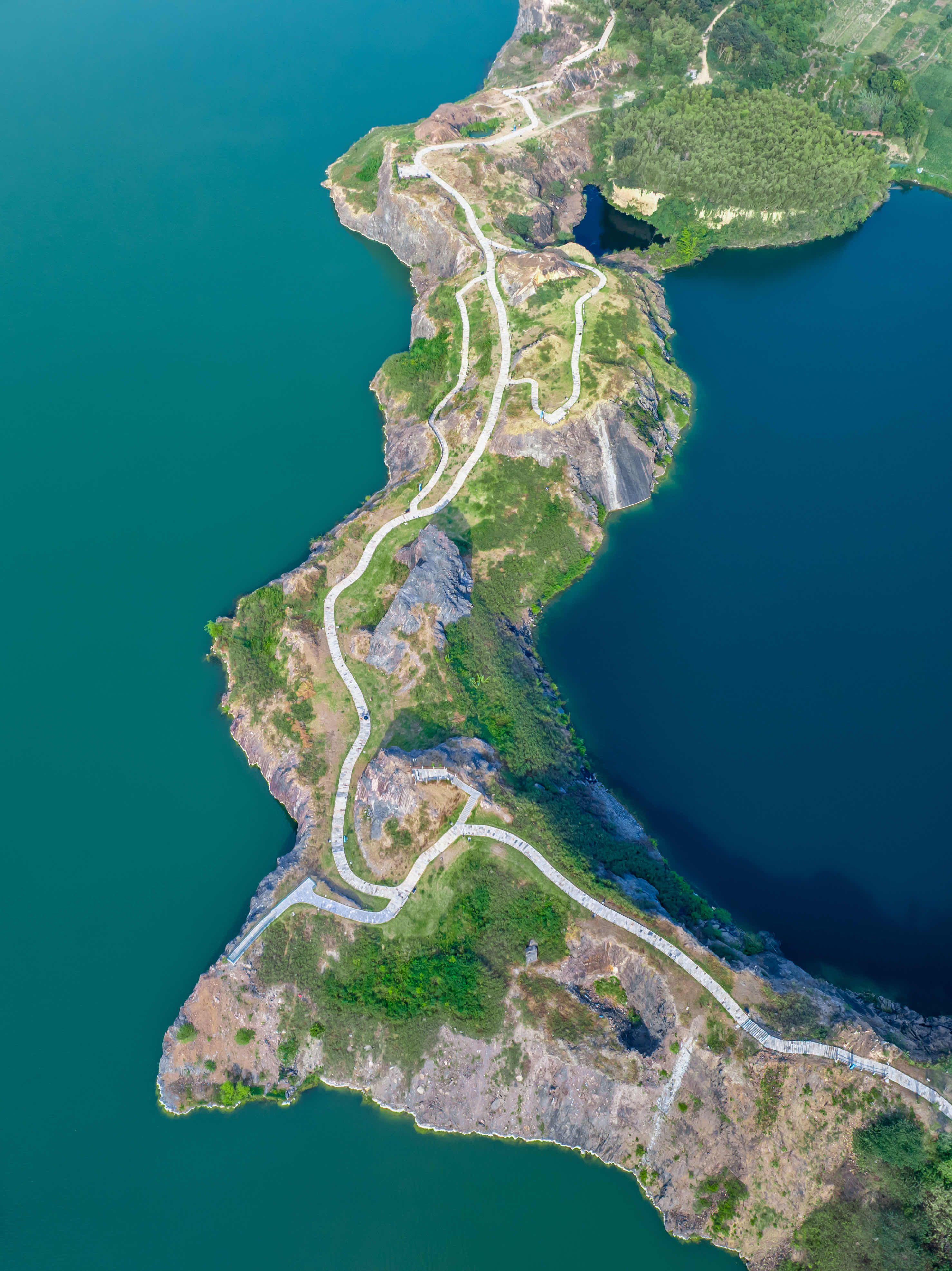 一个矿坑生态公园,天气好的时候湖水呈现深蓝,颜色非常美,航拍有点人间赛尔达的感觉,不过最近那边有在修路,车没办法开到湖边