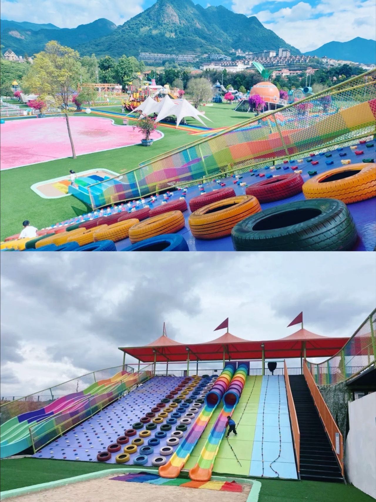 水上乐园区:彩虹滑梯+泡泡派对(记得多带套衣服!)