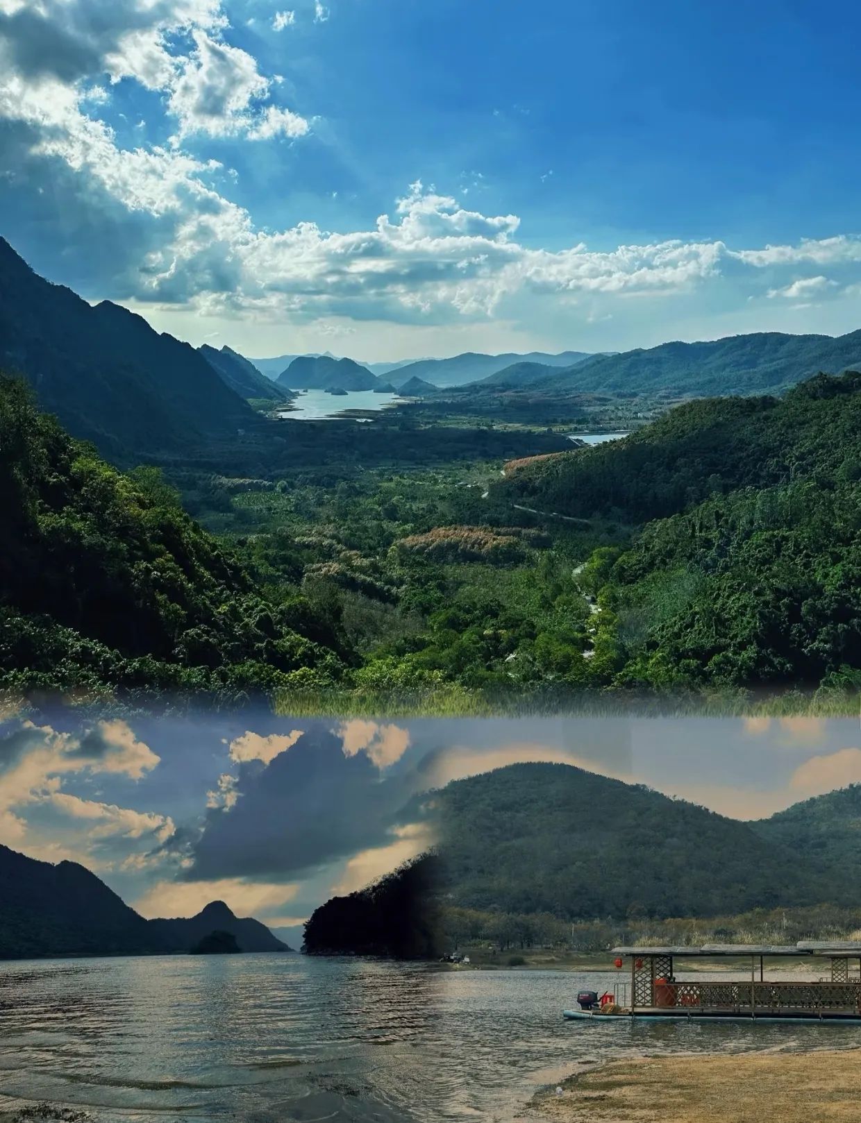 从俄贤岭返回市区的途中,我顺道参观了海南小桂林和大广坝水库。海南小桂林位于娥仙岭生态文化旅游区内,这里山清水秀,确实有几分桂林山水的神韵。我看到不少游客在这里搭帐篷露营,还有无人机爱好者在此航拍。不远处的大广坝水库更是气势恢宏,这是海南第二大水库,湖面面积达100平方公里,坝长近6公里,犹如一条巨龙横卧在群山之间。站在坝上远眺,水库湖面辽阔,群山连绵,山水相映,景色十分壮丽。